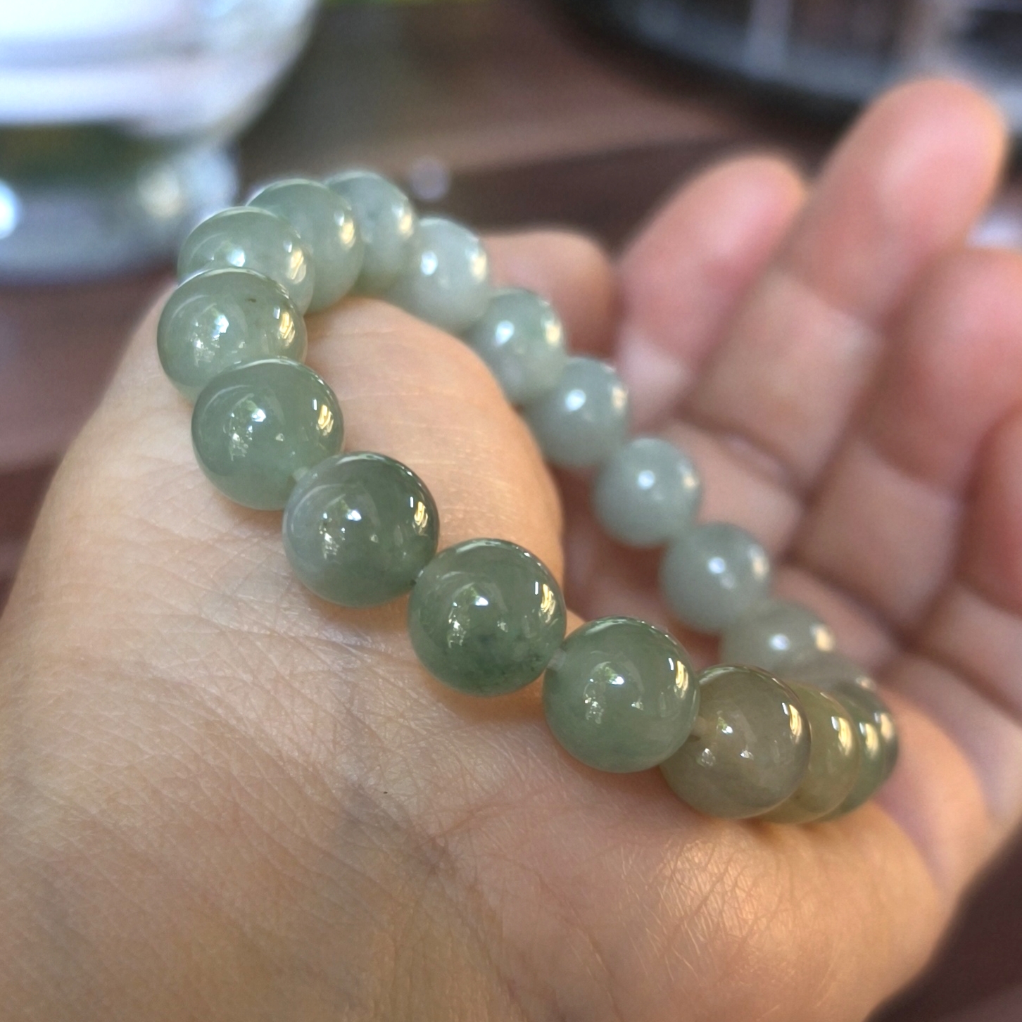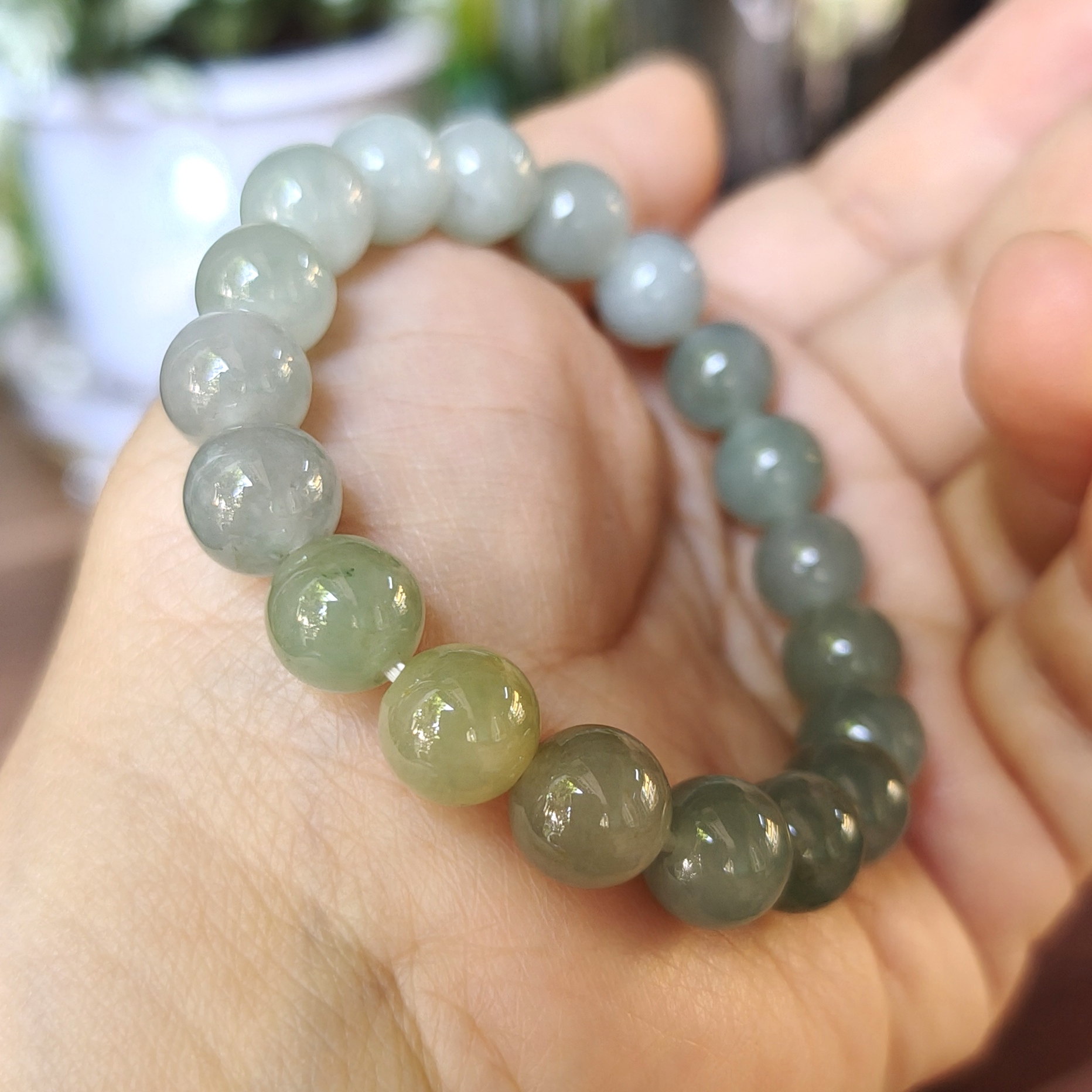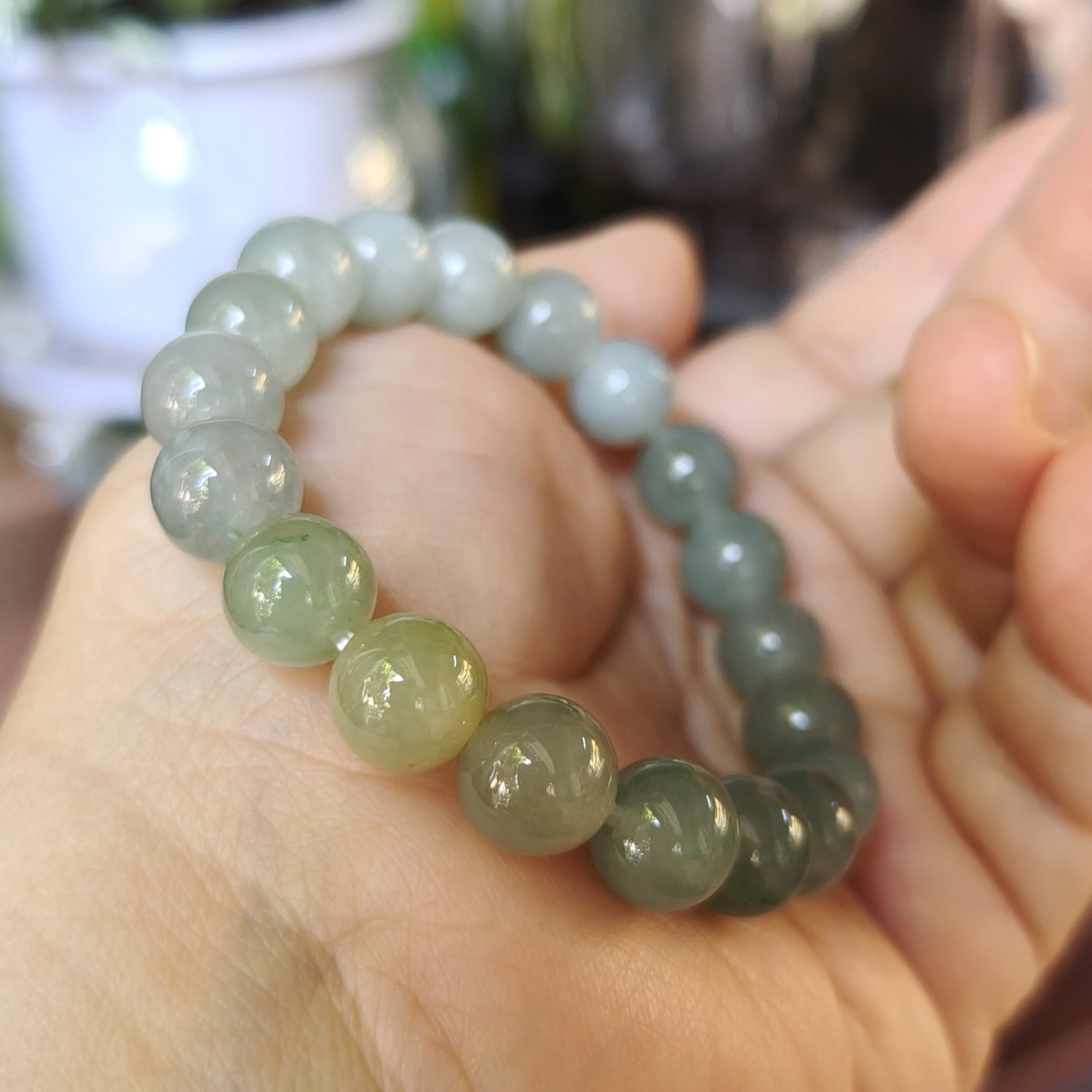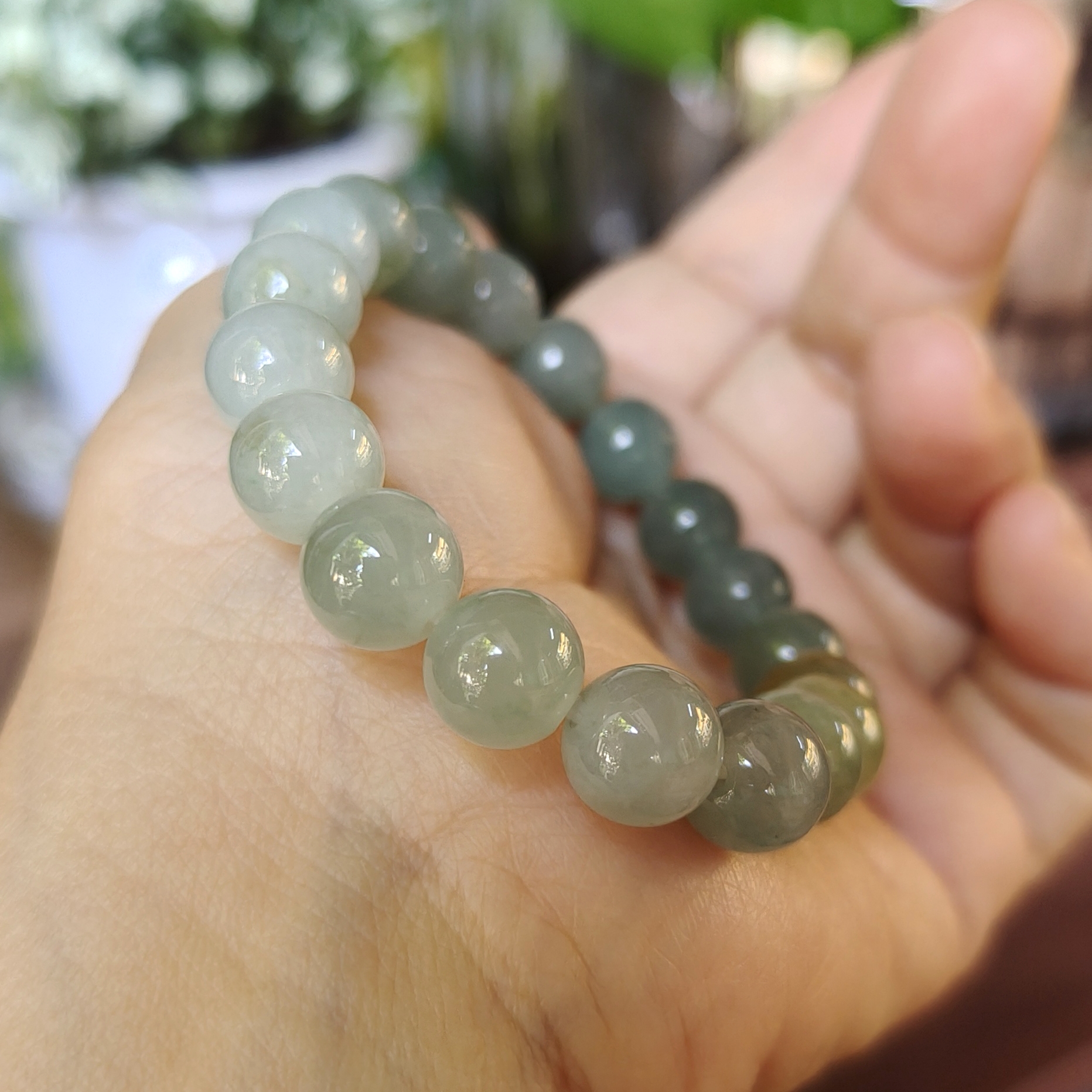 Rất đẹp và đáng yêu, chất lượng đá tuyệt vời. Giá tham khảo chuỗi này gấp nhiều lần chuỗi 10ly trên cho dù chúng có kích thước hạt nhỏ hơn. Không quan trọng lớn nhỏ, chất lượng ngọc và bản phối sắc quyết định giá trị của chuỗi hạt. Ngay khi mũi kéo cắt đứt dây và xáo trộn trật tự hạt đá, giá bán đã bị thay đổi, hoặc người ta từ chối mua. Họ không mua đá lẻ, những hạt đá rời mà mua 1 chuỗi hạt đẹp với giá cao.
