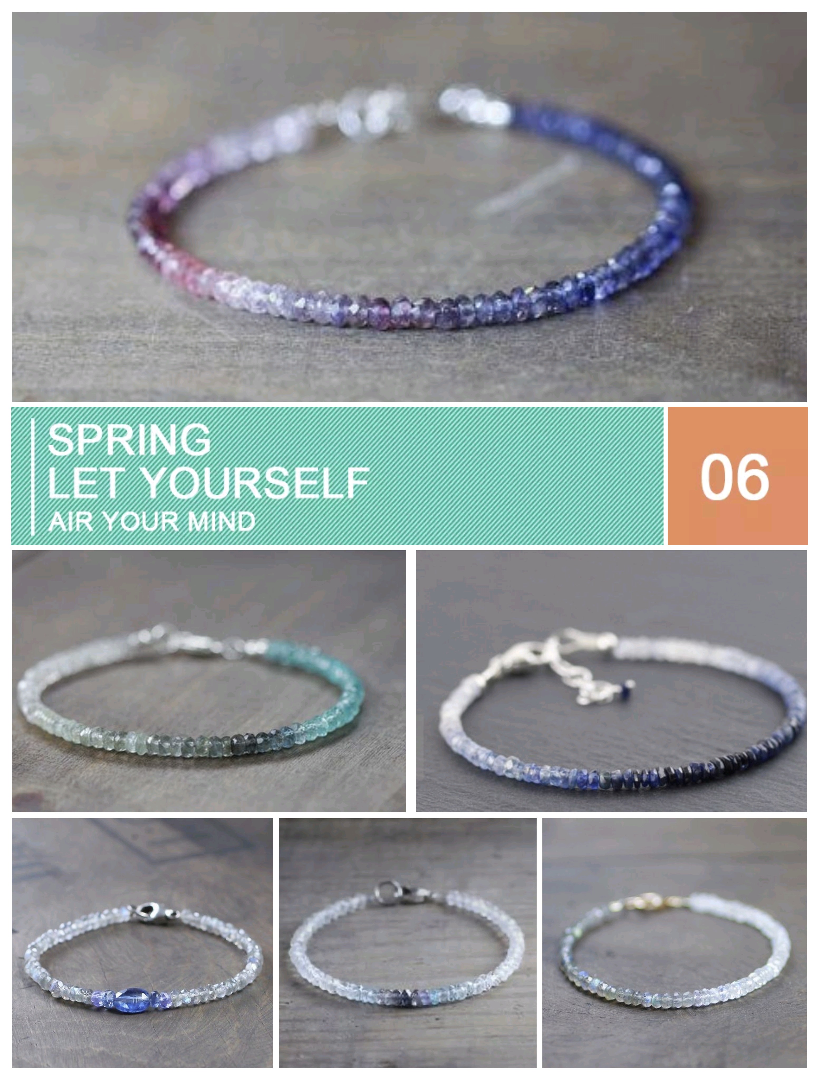 Con hãy nhìn vào những chiếc vòng với sắc xanh ngọc kết hợp xanh biển nhạt. Chúng tạo nên cảm giác thanh mát, như hơi thở mùa xuân. Đây là hòa hợp: màu này làm nền cho màu kia, cả hai cùng tỏa sáng mà không ai lấn át ai.