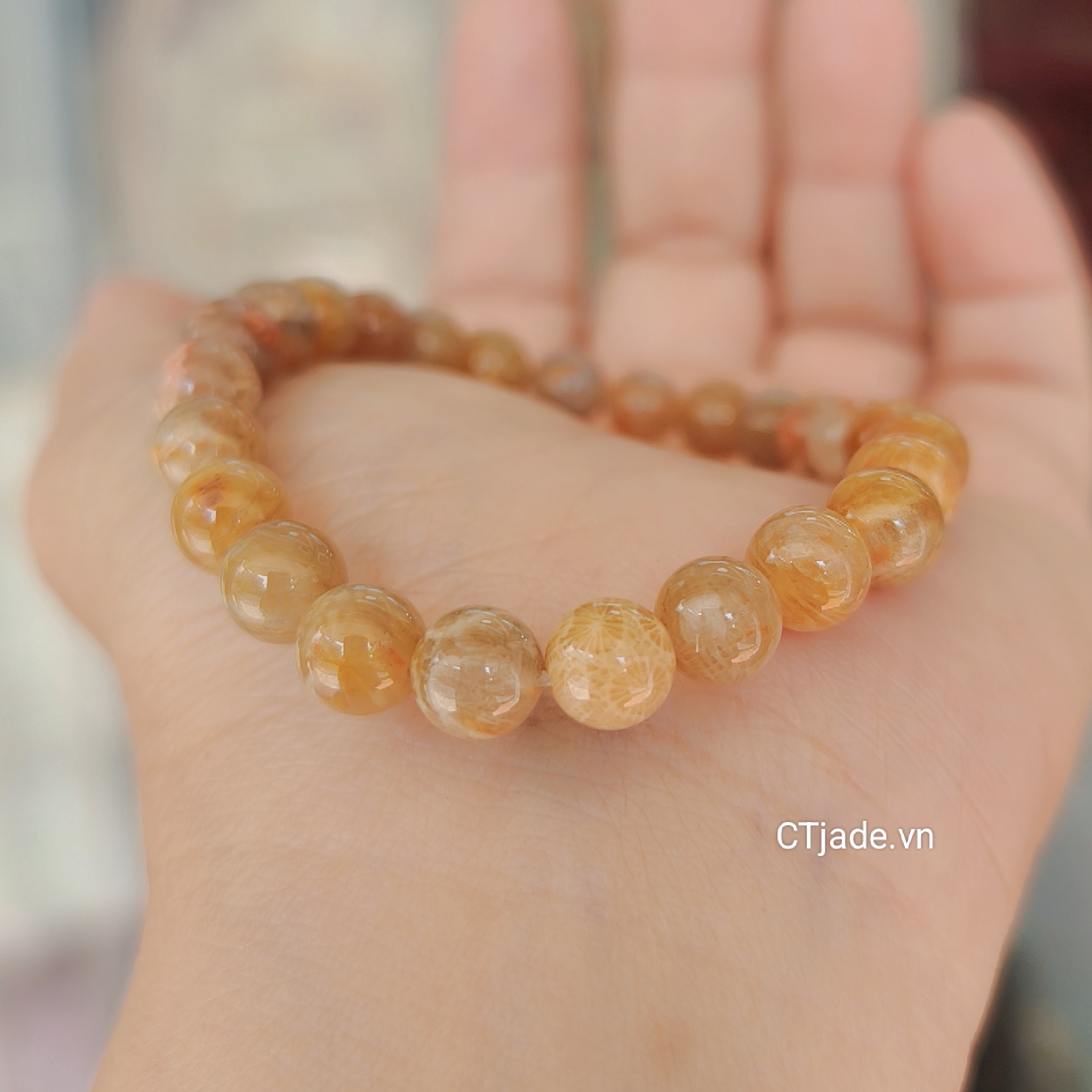 Vòng tay hóa thạch san hô vàng