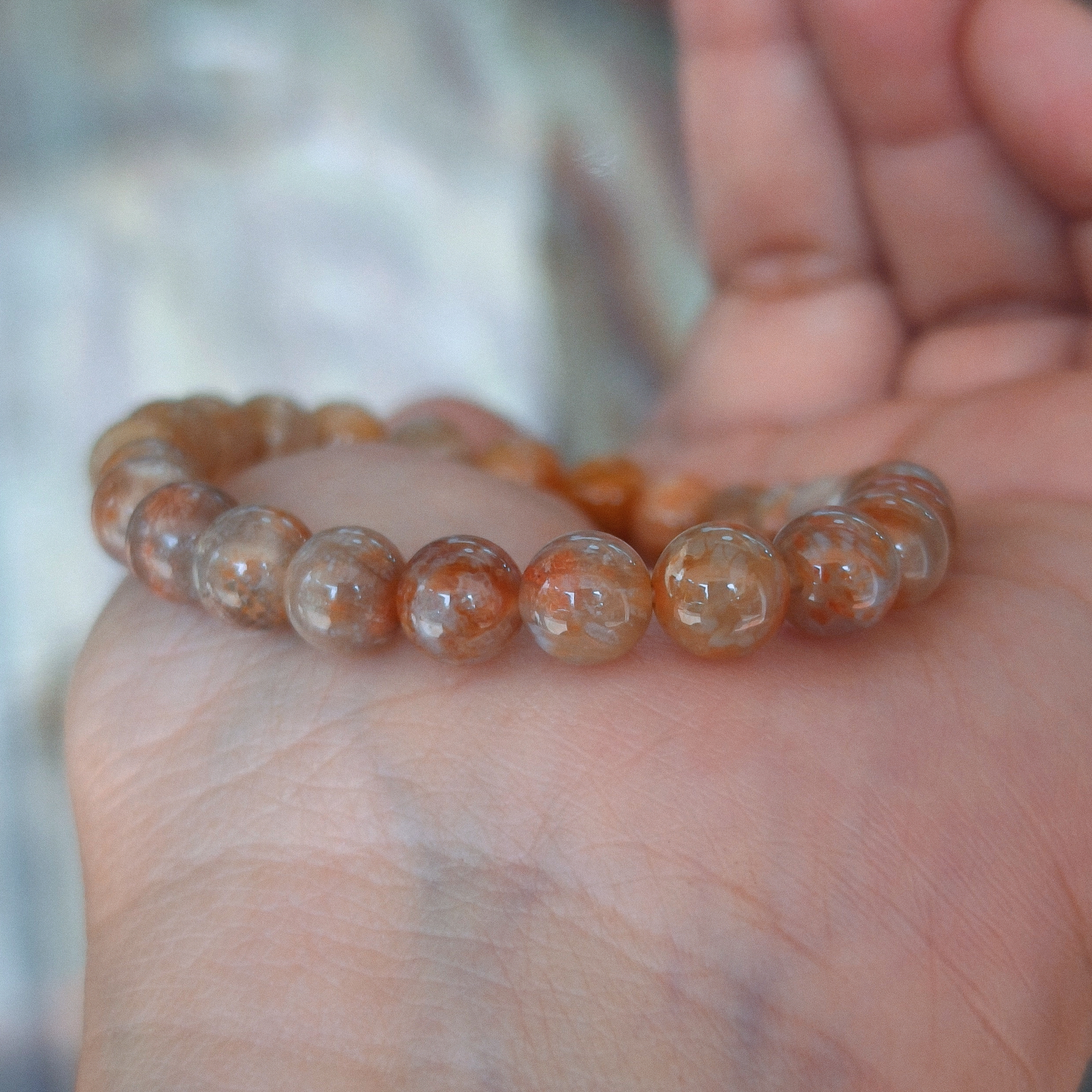 Chiếc này không thuộc sắc vàng kim mà sang sắc trung thổ rồi dù cùng khối lớn với những viên sắc vàng kia nhưng gam sắc khác và độ trong với chủng san hô rất mãn nhãn.