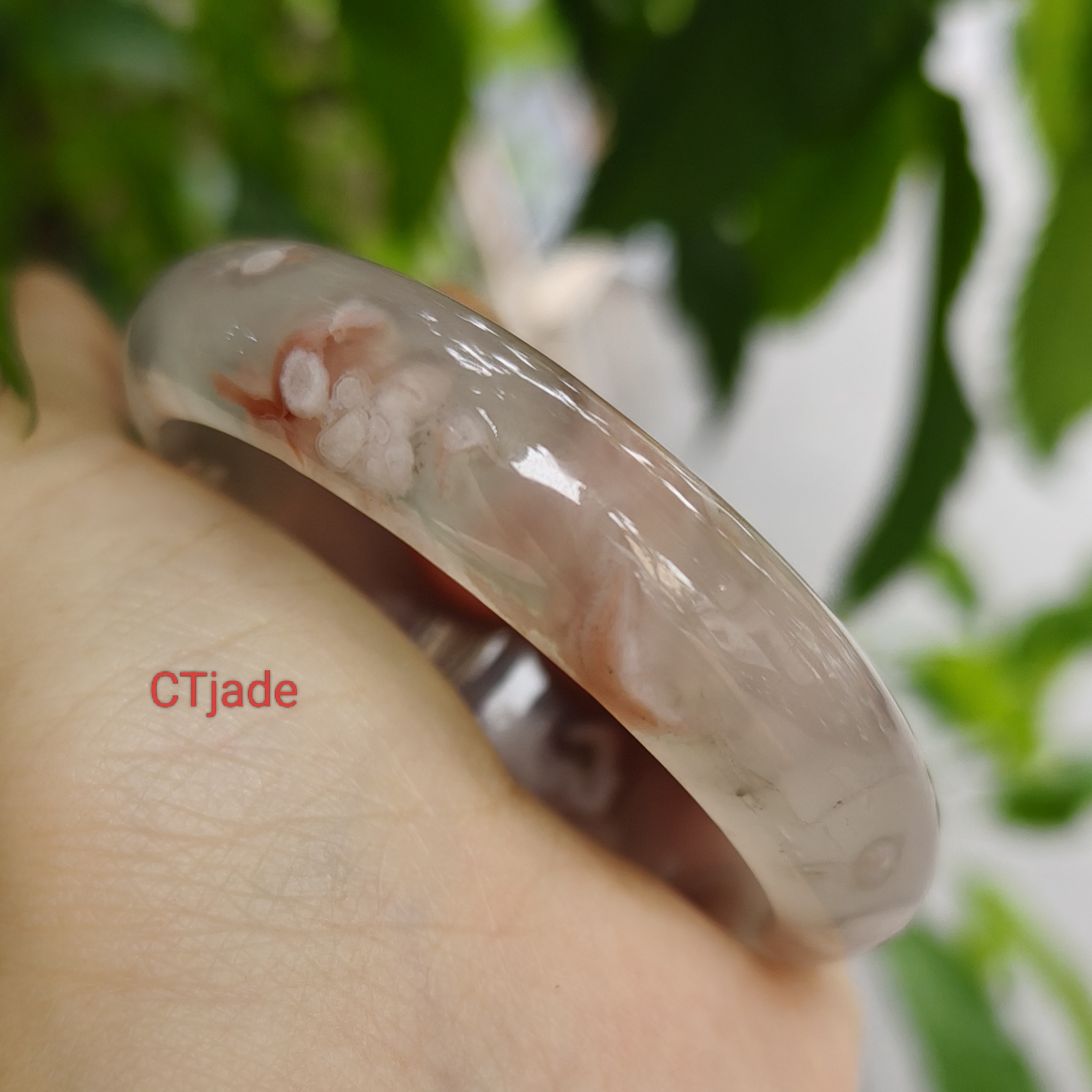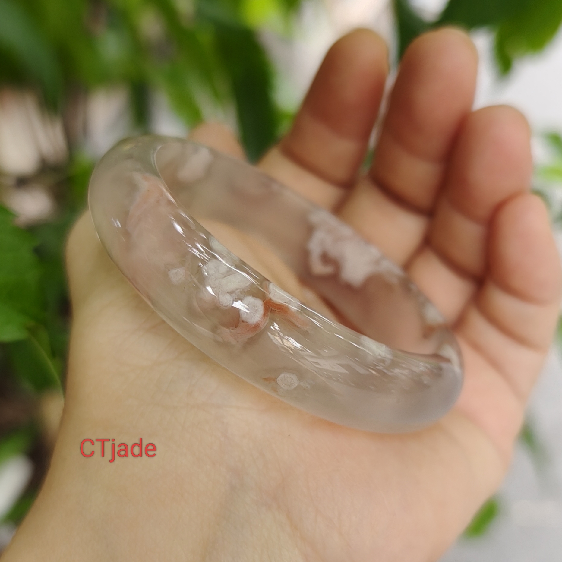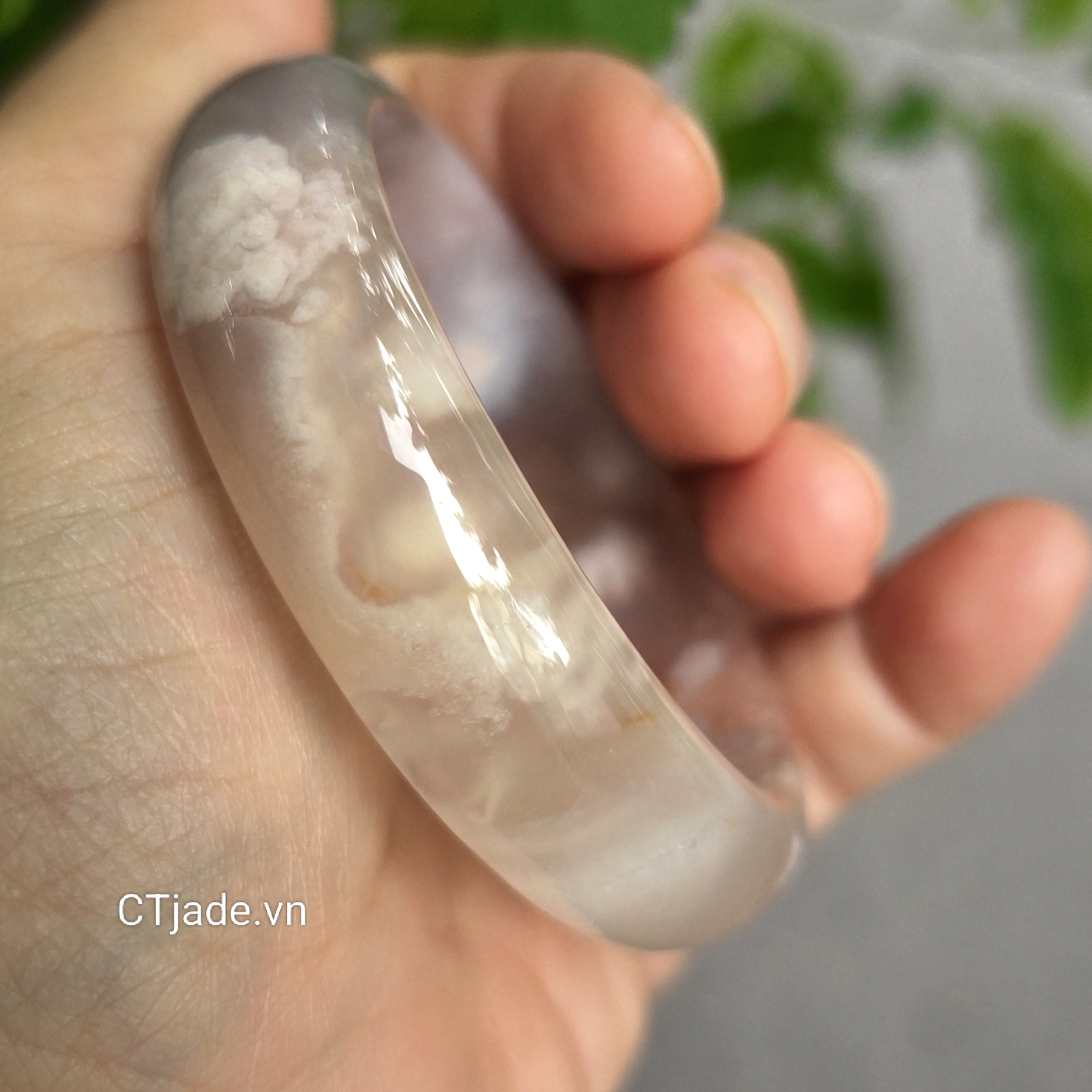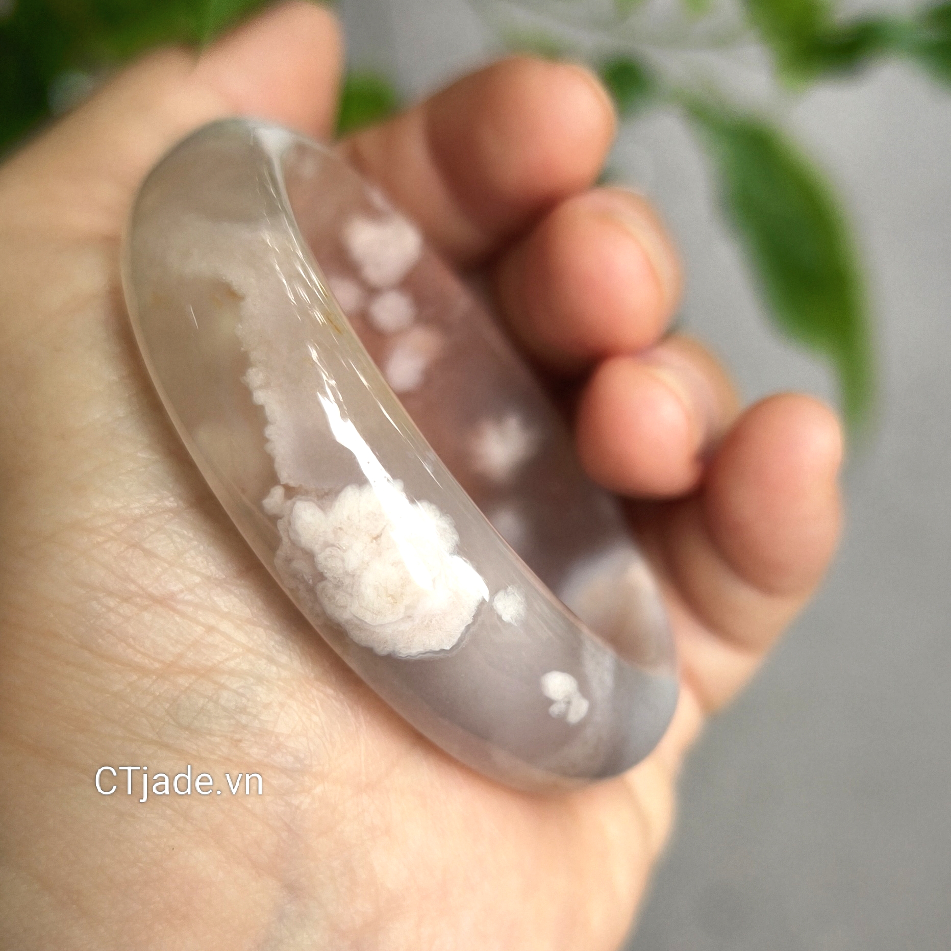 Độ trong trẻo của chiếc vòng rất tuyệt đủ để nhìn thấy từng cụm hoa ẩn sâu bên trong như đang nở dưới làn sương sớm. Hoa và nền đá hòa vào nhau mượt mà, tạo nên một vẻ đẹp tinh tế, nhẹ nhàng mà cuốn hút đến lạ
