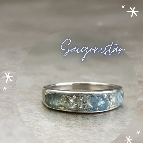 - đá Aquamarine thiên nhiên, sử dụng kep resin cao cấp cho chế tác này.