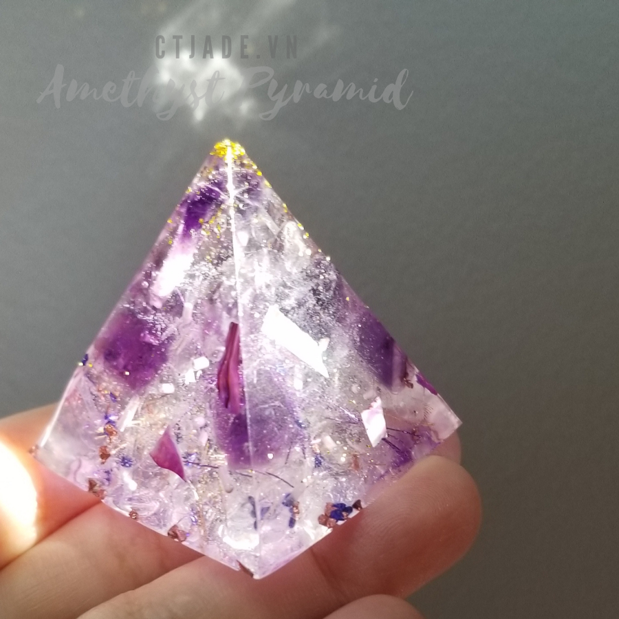 - Kim tự tháp đá thạch anh tím là một tinh thể năng lượng rất mạnh mẽ, chúng mang năng lượng bảo vệ, là lựa chọn đầu tiên của nhiều nhà siêu hình học. Chúng làm tỉnh thức, thông minh và thông tuệ hơn bạn nghỉ, sự tự tin trong bạn được khai thác trước vẻ đẹp và vòng xoáy năng lượng cuộn cuộn của tinh thể này.