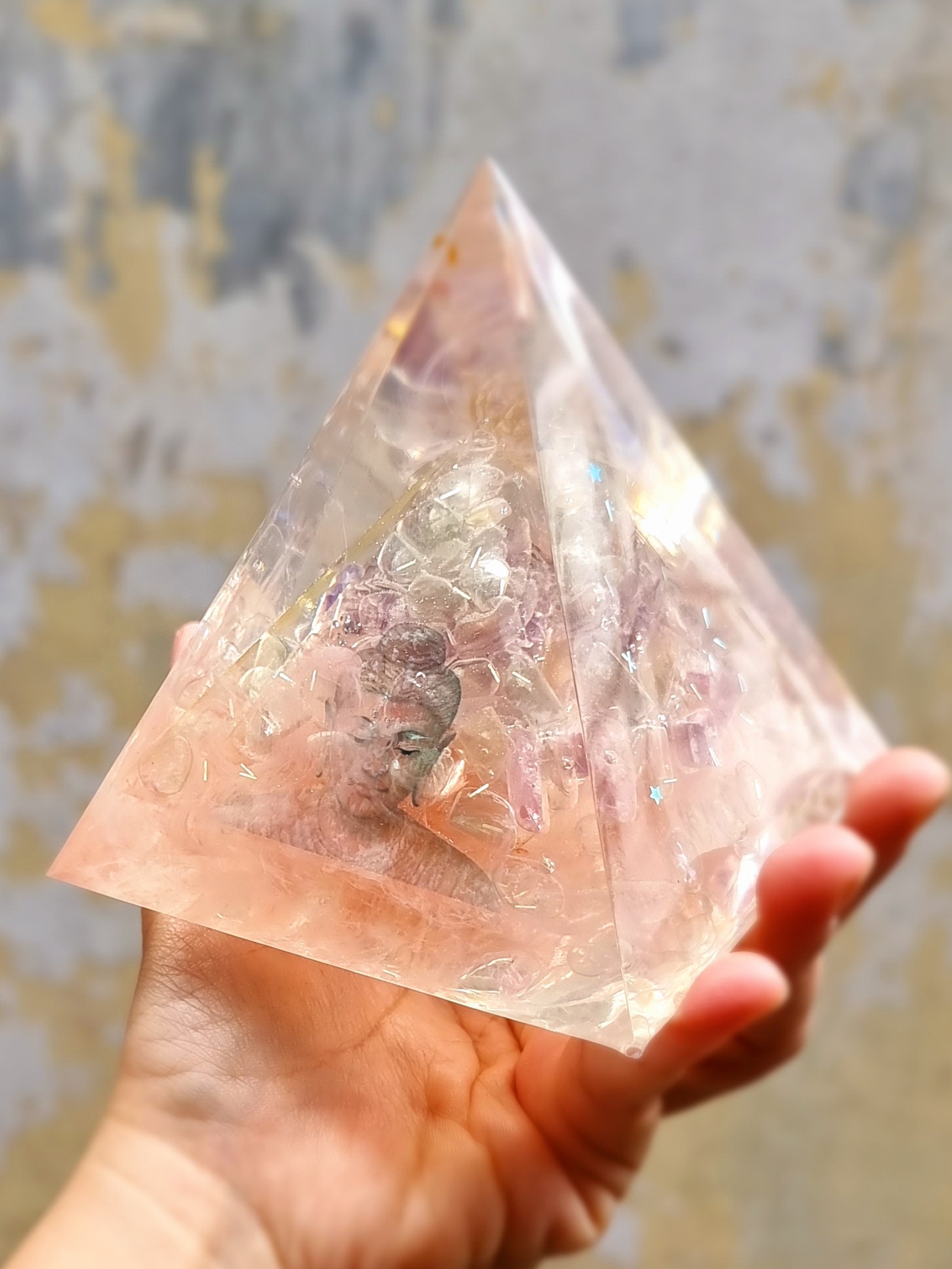 - Mẫu 2210309 Kim tự tháp phong thủy, kim tự tháp năng lượng Crystal Light, Orgonite Crystal Light