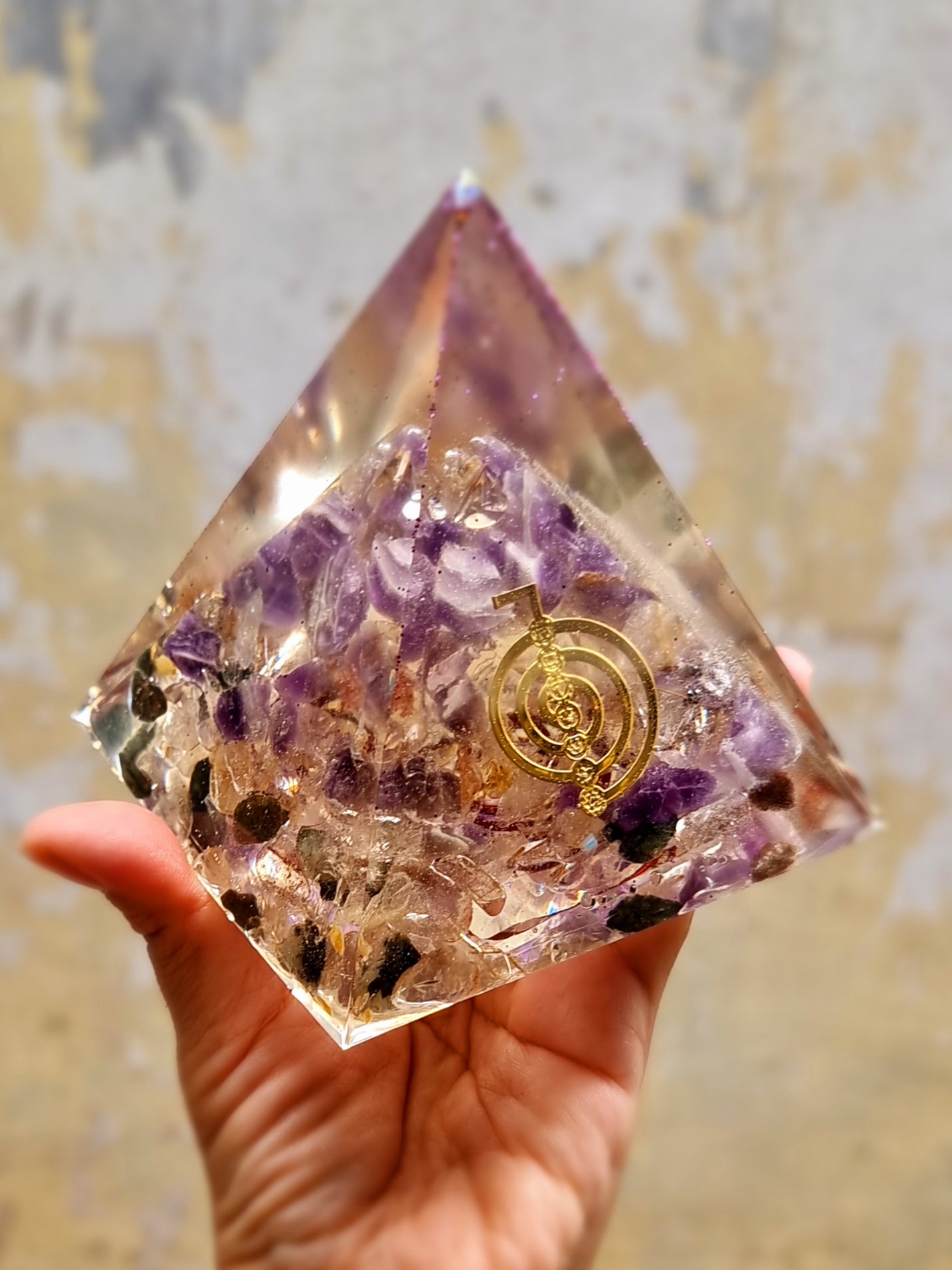 - Mẫu 2210311 Kim tự tháp phong thủy, kim tự tháp năng lượng Crystal Light, Orgonite Crystal Light
