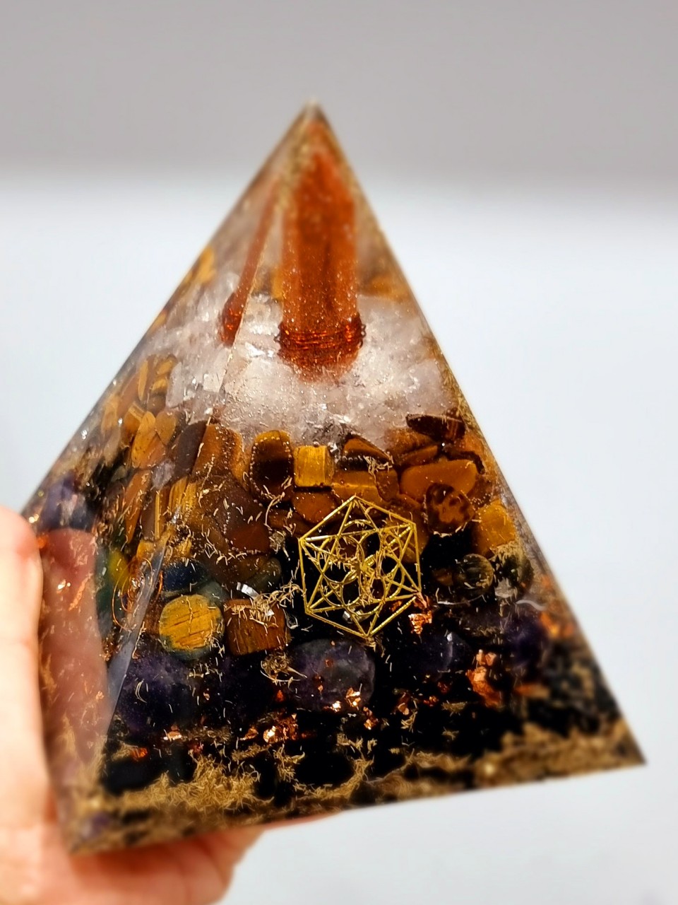 Orgonite Kim tự tháp năng lượng Fluorite & Agate Crystal Light.