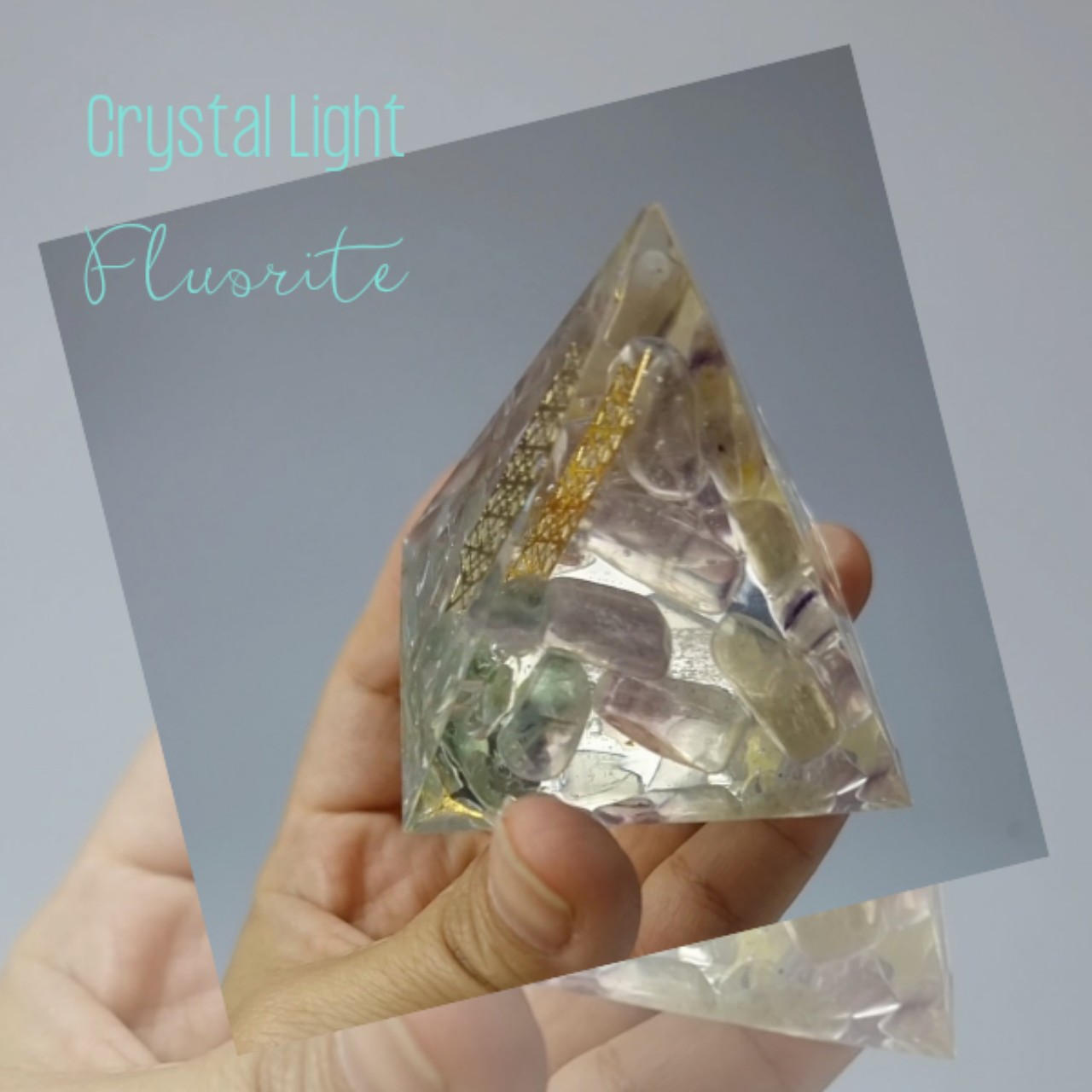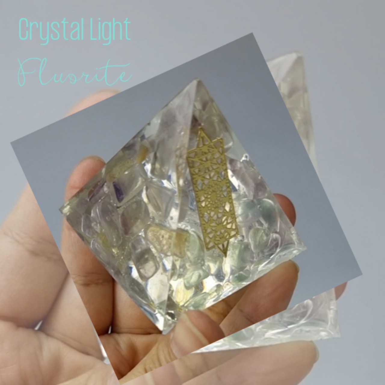 P21051249 Kim tự tháp năng lượng phong thủy hình học thiêng Crystal Light đá Flourite thiên nhiên