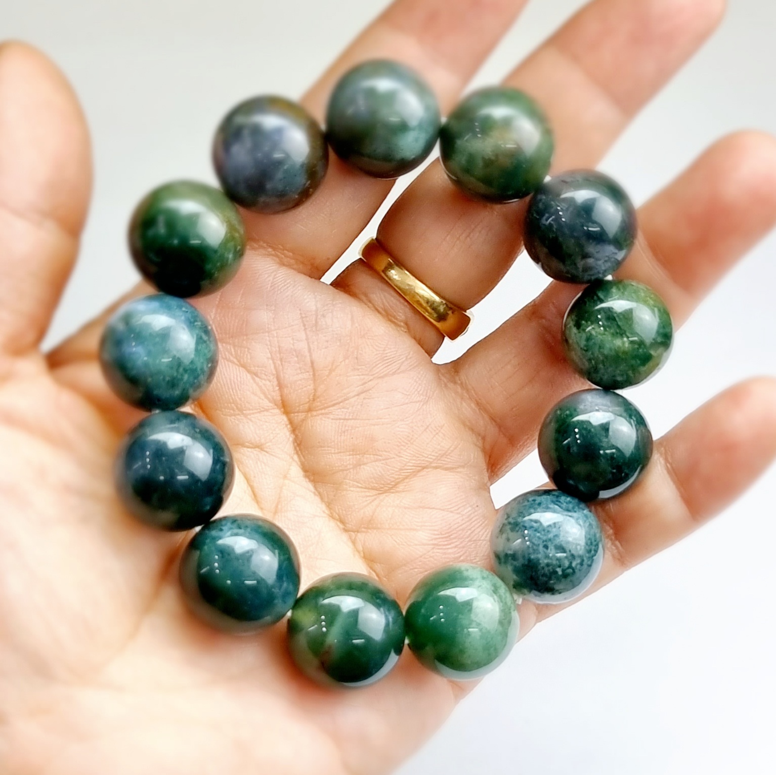 Ngoài các đặc tính chữa lành chung của Agate và Chalcedony, Moss Agate là một viên đá của sự khởi đầu mới. Làm mới tâm hồn và cho phép bạn nhìn thấy vẻ đẹp trong tất cả những gì bạn nhìn thấy. Mã não rêu làm giảm độ nhạy cảm với thời tiết và các chất ô nhiễm môi trường. Nó thu hút sự giàu có dồi dào và cải thiện lòng tự trọng. Phát triển sức mạnh và khả năng hòa hợp với những người khác. Truyền cảm hứng cho những lý tưởng mới sau thời gian trì trệ. Mã não rêu thúc đẩy sự thể hiện bản thân và giao tiếp. Cân bằng cảm xúc, giải phóng sự sợ hãi và căng thẳng. Khuyến khích niềm tin và hy vọng. Nó giúp loại bỏ trầm cảm do mất cân bằng não.