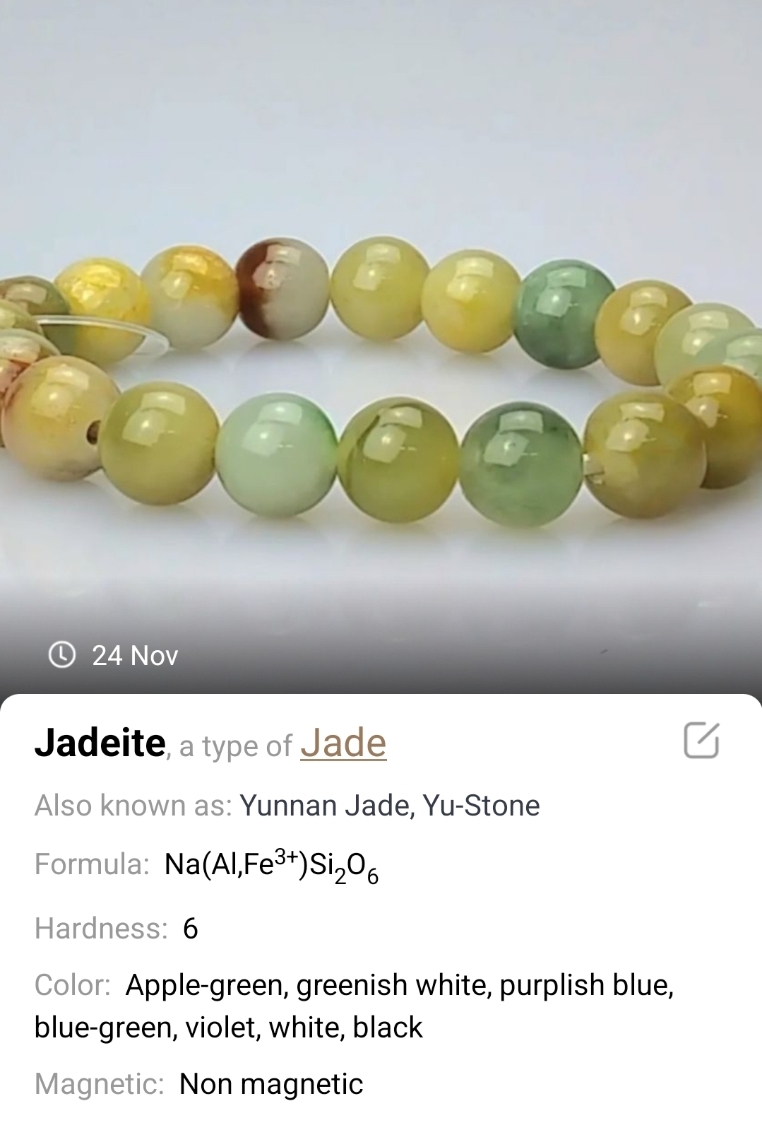 There are a few factors to consider when selecting jadeite. Color is the most important one. Specimens with vibrant colors and translucency are preferred, while dark colors have a lower value. Eye-clean samples are preferred but evenly spread root-like patterns of a contrasting color can be valuable. Unfortunately, jadeite is commonly imitated with glass, hydrogrossular, serpentine, and other materials. Hardness and specific gravity can be assessed to determine authenticity. Authentic jadeite will often contain slight imperfections in coloration and inclusions and will be cool to the touch.