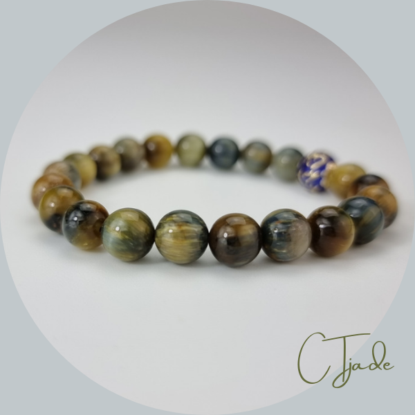 Trang sức phong thủy hộ mệnh Vòng tay đá Tiger Eye có khả năng tập trung tâm trí, thúc đẩy tinh thần minh mẫn, hỗ trợ chúng ta giải quyết các vấn đề một cách khách quan và không ồn ào bởi cảm xúc. Đặc biệt hữu ích để chữa bệnh tinh thần, xua tan sợ hãi và lo lắng.
