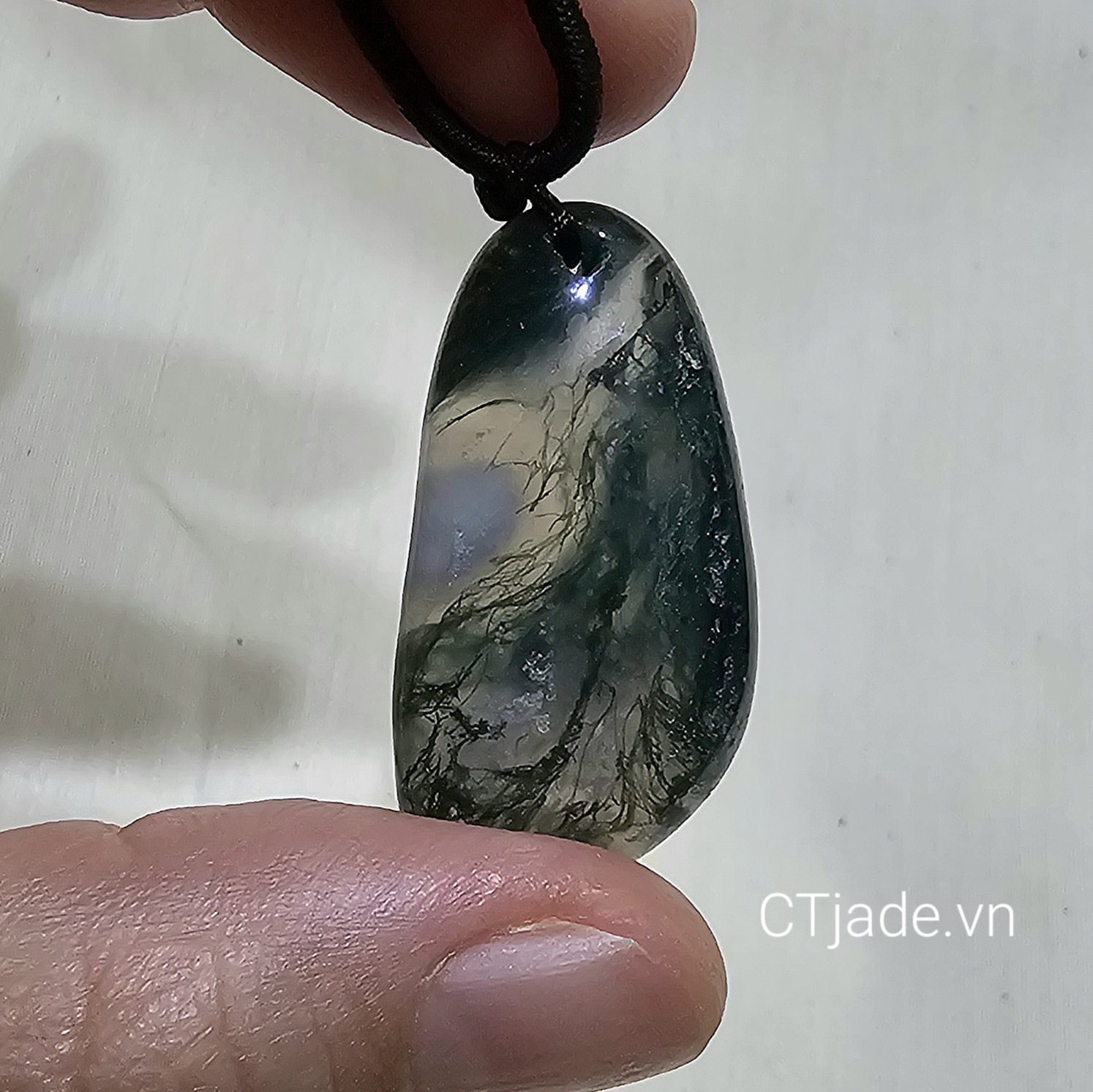 Trang sức cao cấp đá thiên nhiên, mặt dây chuyền đá Mã não rêu, dòng một phiên bản.