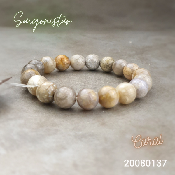 • Vòng tay San Hô Hóa Thạch thiên nhiên, đọ cứng của loại đá này ngang với Jasper, không giòn như San Hô