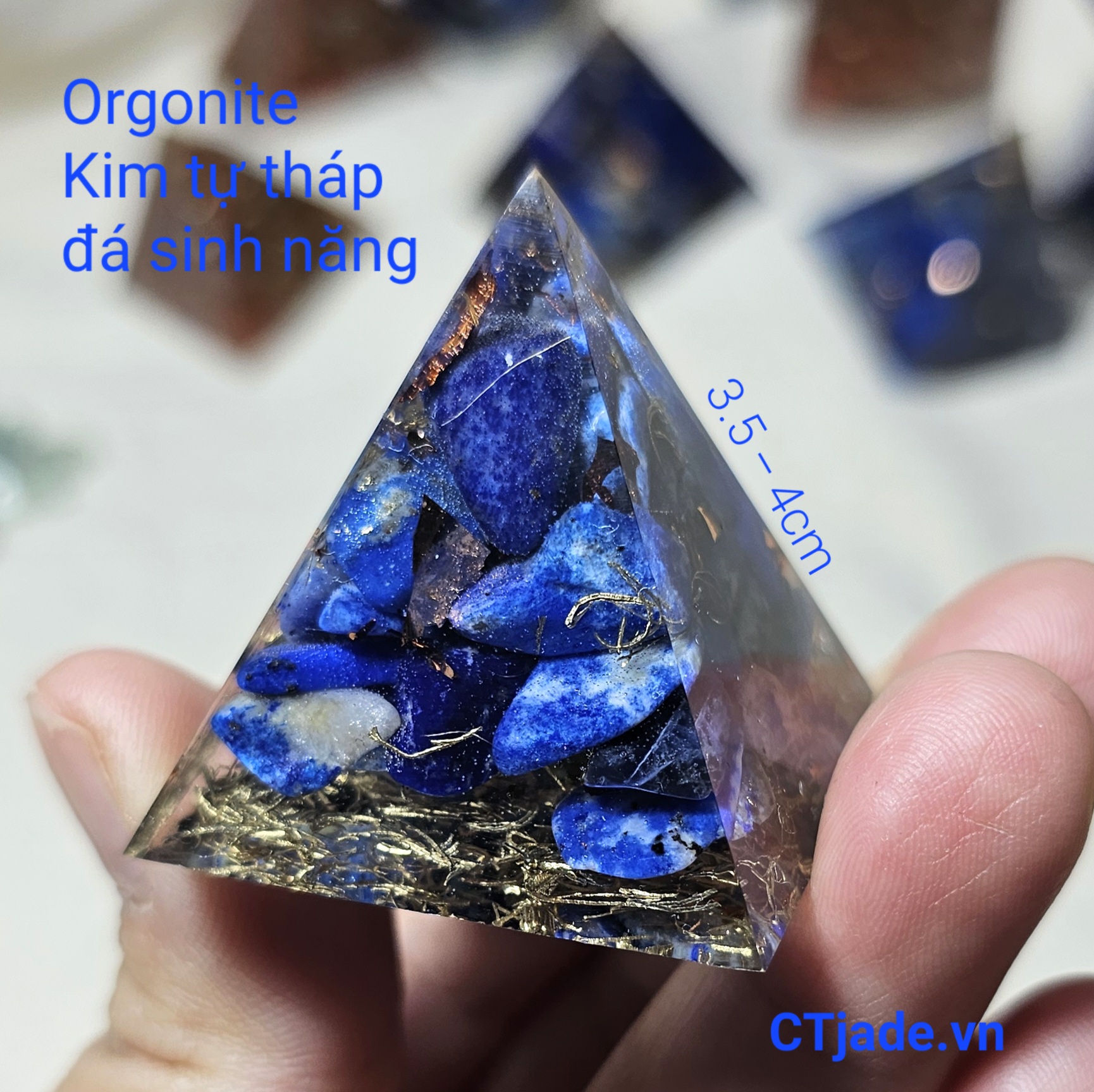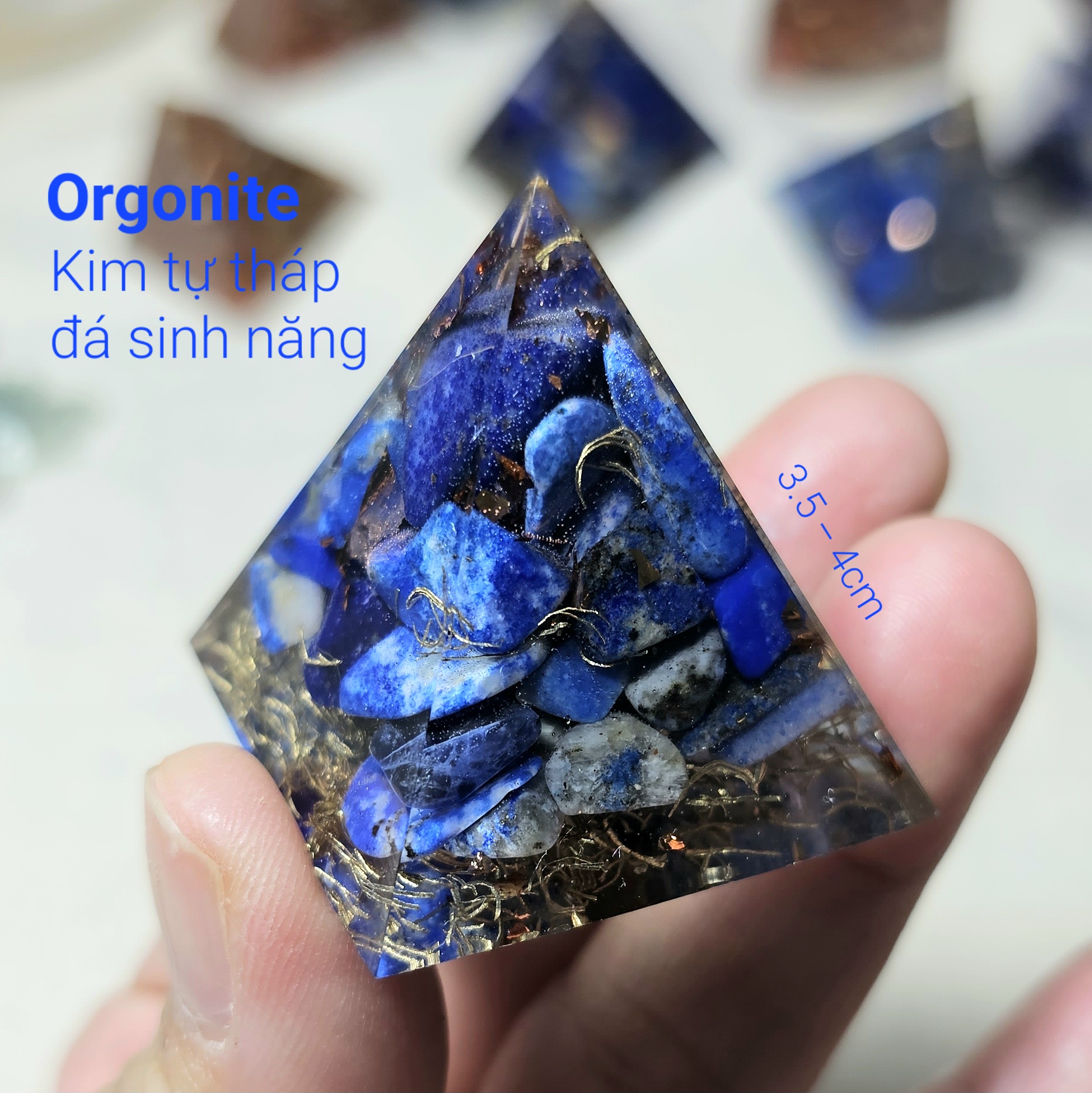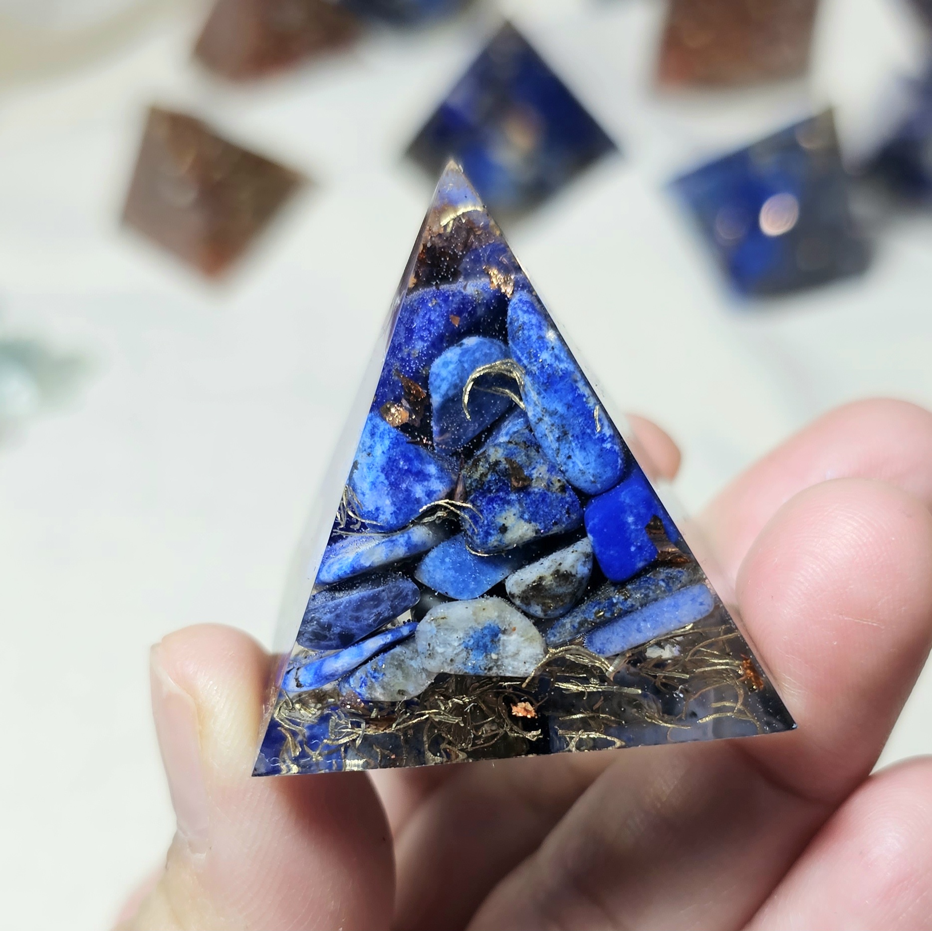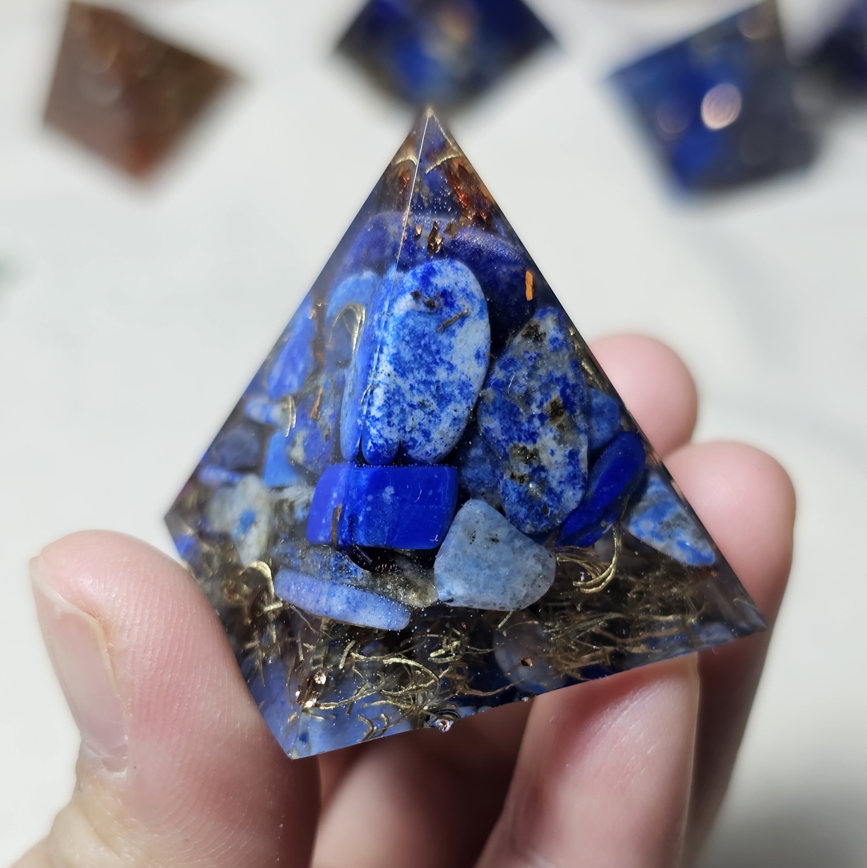 Kim tự tháp orgonite đổ đá Lapis, đá sinh năng, khí cụ dùng thu hút năng lượng khi thiền. Vật phẩm phong thủy biểu tượng cho sức mạnh, bảo vệ và lòng dũng cảm.