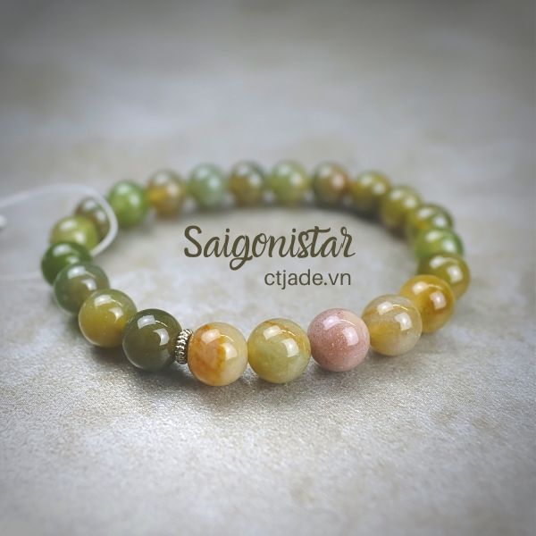 - Vòng tay này đá Moss Agate, cùng nhóm đá có thành phần, độ cứng như Chalcedony.