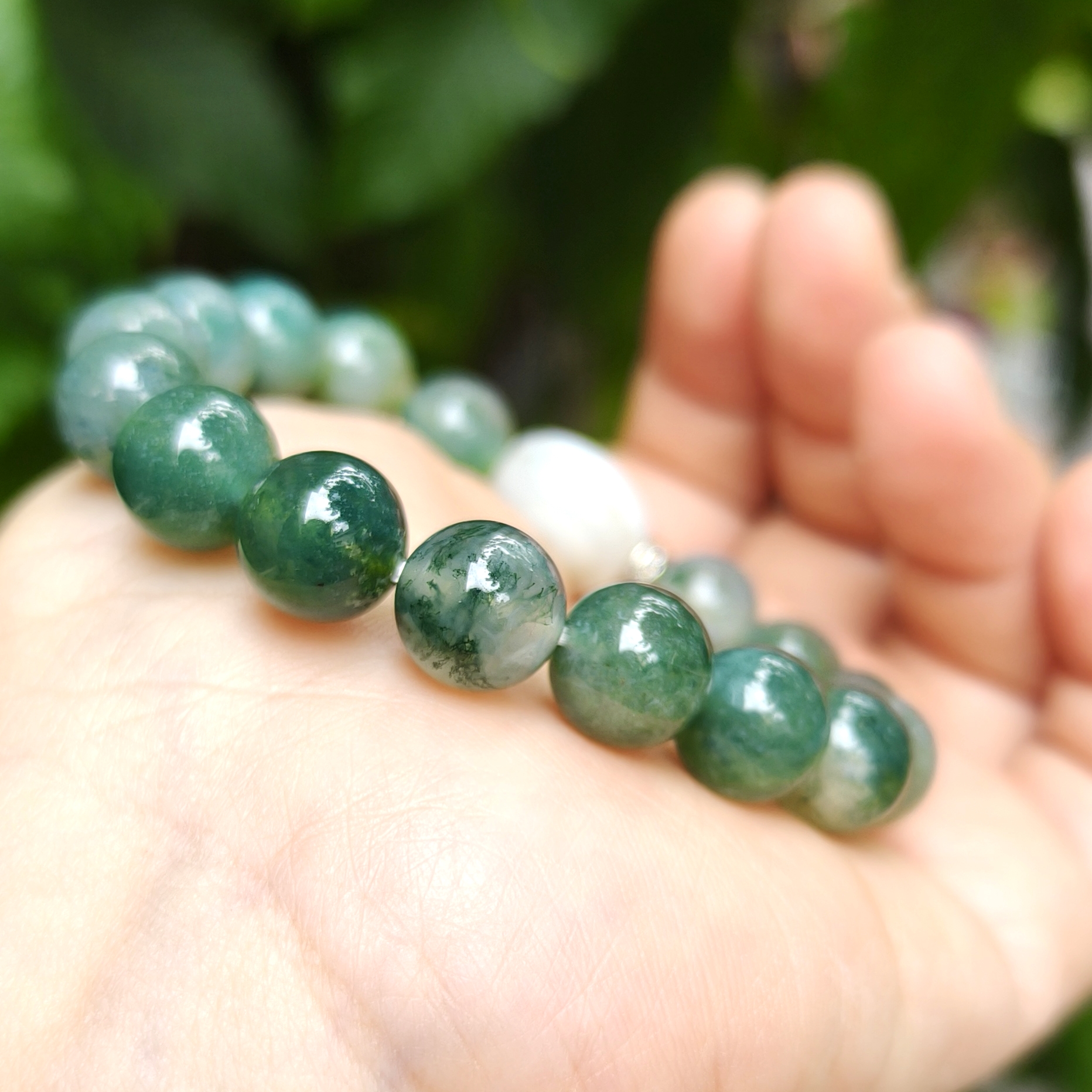 Đá Chalcedony, Moss Agate là một loại đá thiên nhiên phổ biến được tin yêu. Chalcedony là một loại thạch anh đặc biệt của tạo hóa đại diện cho tính vạn biến và phong phú. Chúng bắt nguồn từ tiếng Latinh chalcēdōnius. Có cấu trúc tế bào như là một loại mã não và một dạng silicon dioxide tự nhiên của silica. Tế bào đá Chalcedony rất mịn đẹp và có dạng vi tinh thể thích hợp chế tác các tác phẩm thủ công. Về sắc màu, vân đá chúng ôm cả bản màu tự nhiên trong mình, màu gì cũng có, và có sự pha trộn vân sắc như những tác phẩm mỹ thuật trong hội họa. Tuy nhiên nhiều nhát vẫn là săc xanh lục, sắc chính của sự sống trên hành tinh.