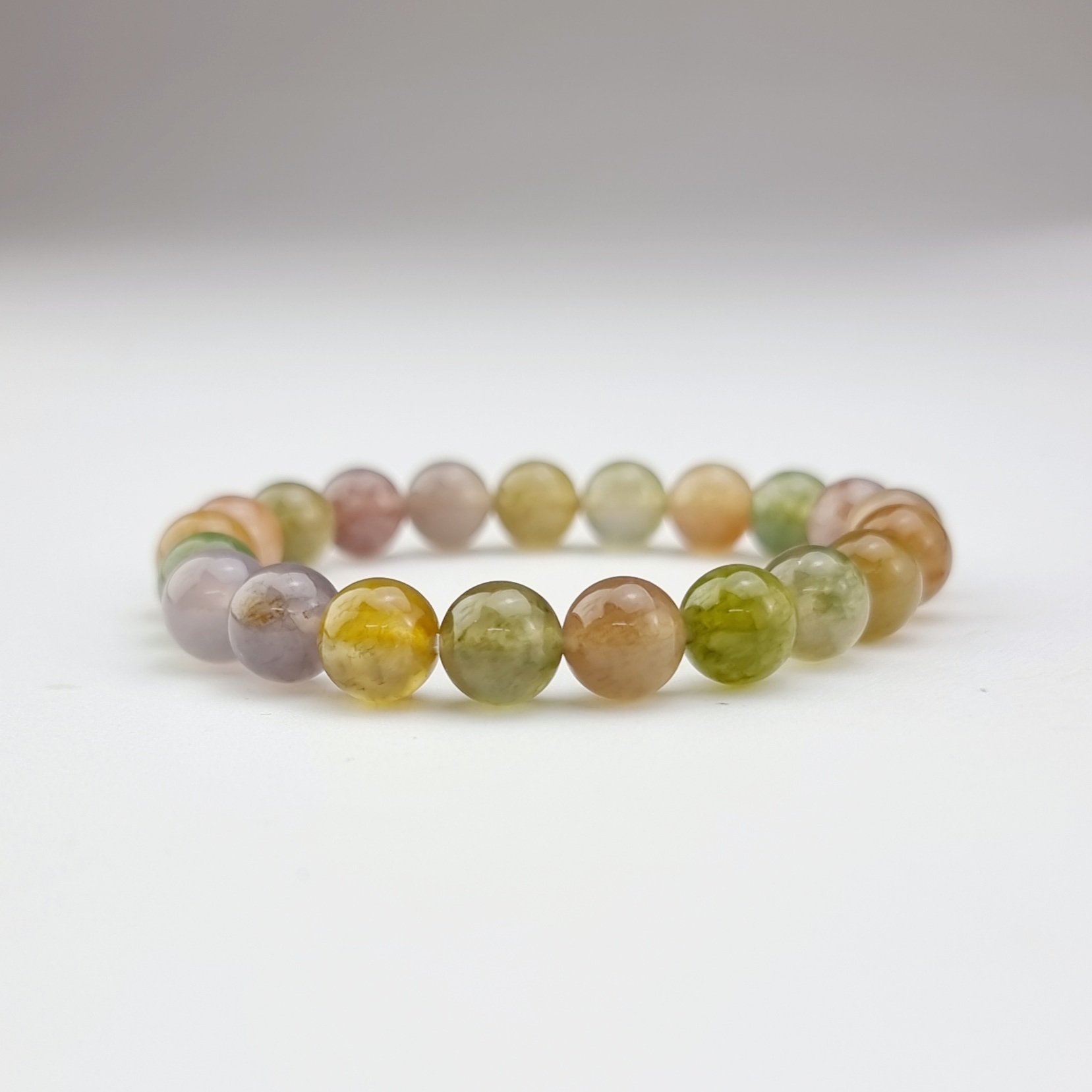 Vòng tay phong thủy may mắn đá Chalcedony & Moss Agate thiên nhiên