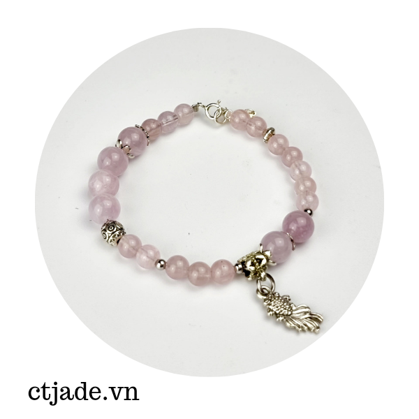 Trang sức phong thủy đá thạch anh hồng là viên đá bảo về và tăng nhiều tình yêu thương, chữa lành các tổn thương nơi trái tim. Năng lượng của chúng đặc biệt ảnh hưởng tích cực đến cảm xúc của người đeo chúng.