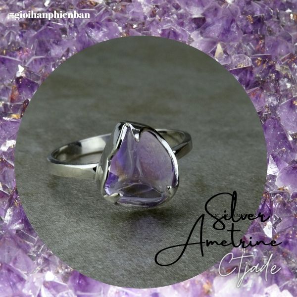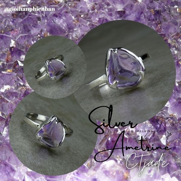 Nhẫn Bạc Si Vàng Trắng Đá Ametrine | Trang sức cao cấp đá thiên nhiên CTjade