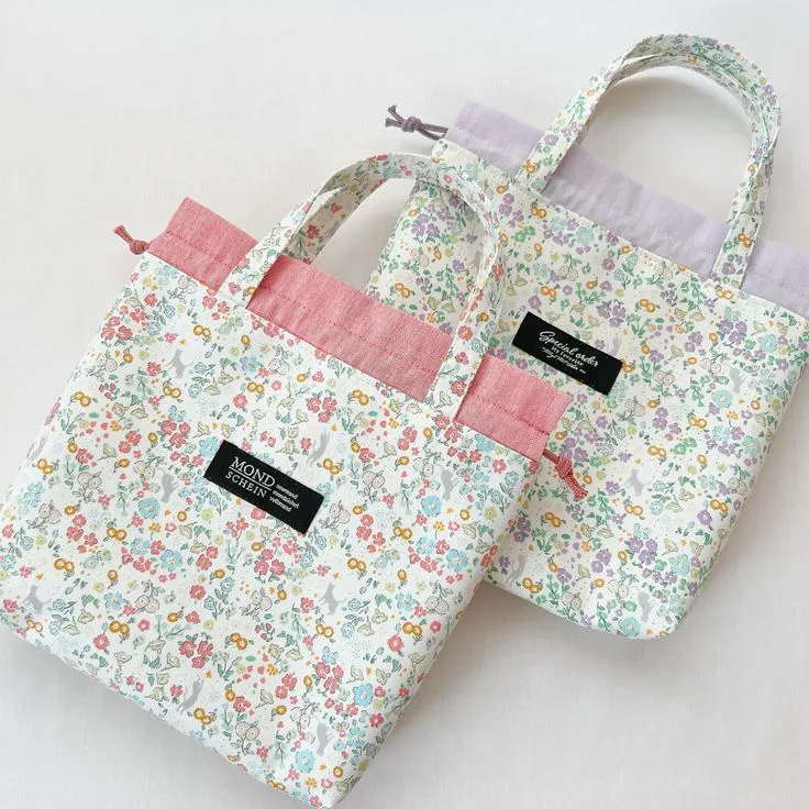 Túi vải rút dây 2 lớp đáy tròn xinh xắn lắm, chất liệu vải mịn đẹp, đường may kỹ, khéo léo lắm.