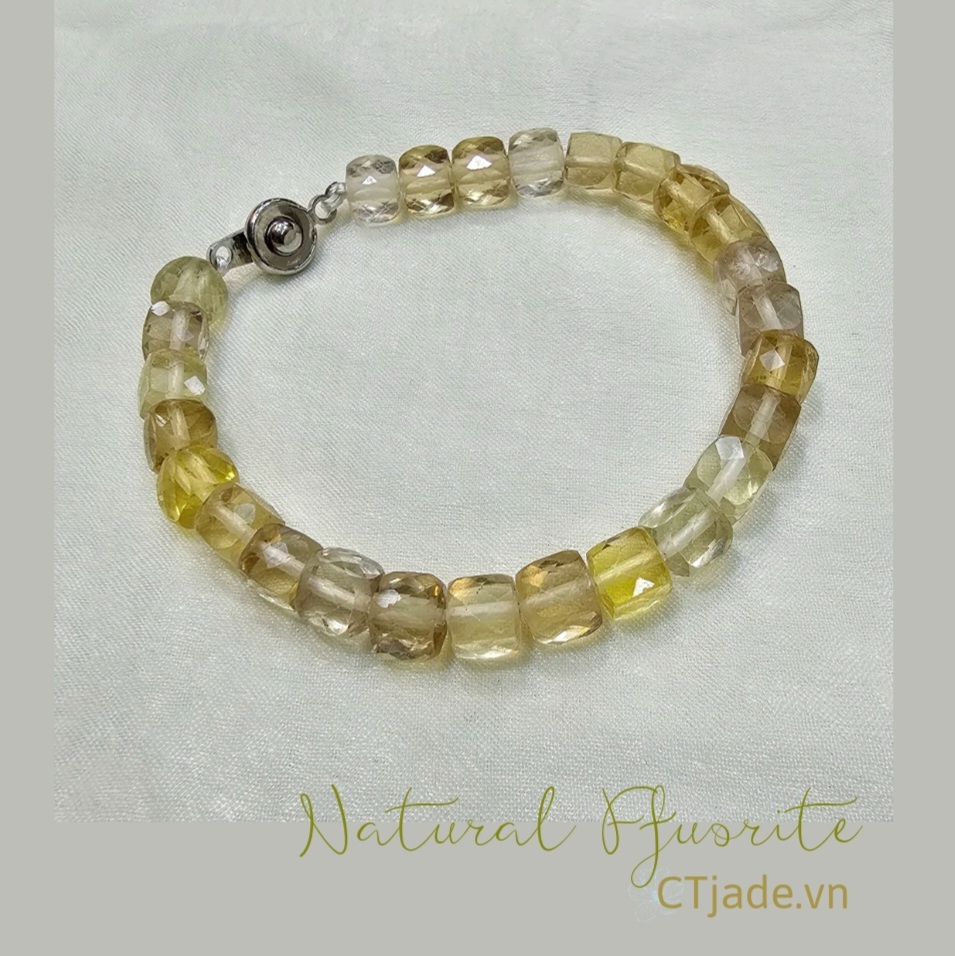 Vòng tay đá Fluorite thiên nhiên 100%, sắc vàng óng tự nhiên quý hiếm, chất lượng ánh sáng đẹp rực rỡ.