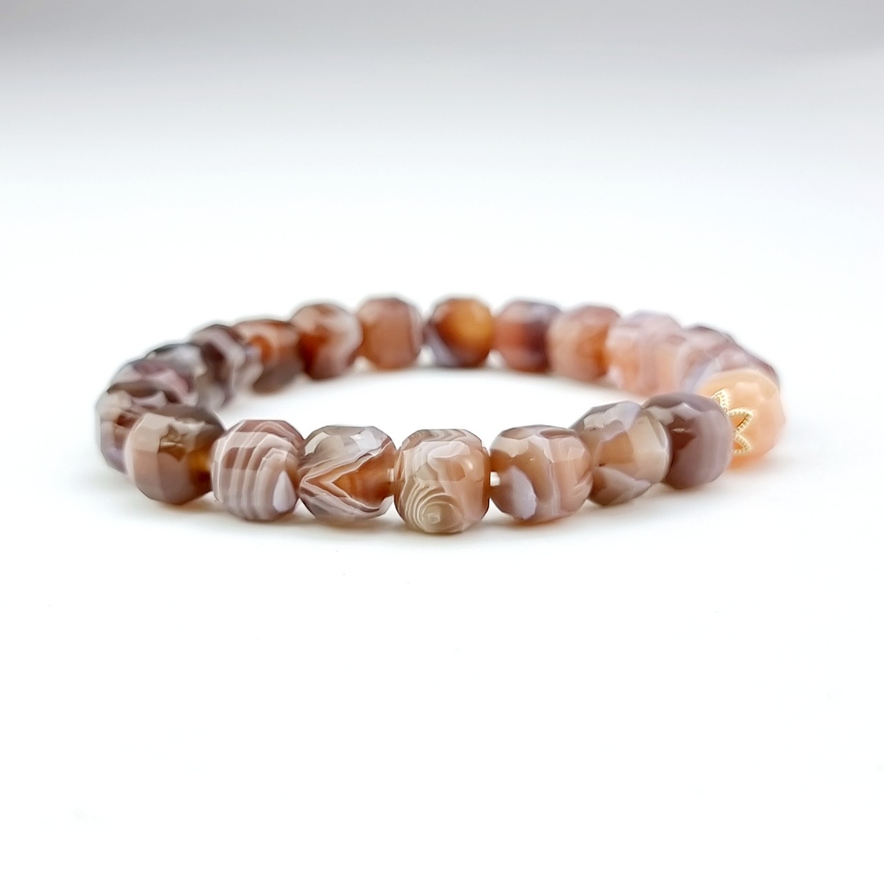 Mã não Botswana là một viên đá tuyệt vời có thể cân bằng năng lượng thể chất, cảm xúc và trí tuệ của chúng ta. Khi kết hợp với Pha lê tím, chúng cũng có thể điều hòa âm dương của chúng ta. Chúng sẽ mang lại cho ta sự ổn định bên trong, đặc biệt là khi chúng ta cảm thấy như mọi thứ xung quanh mình sắp sụp đổ.