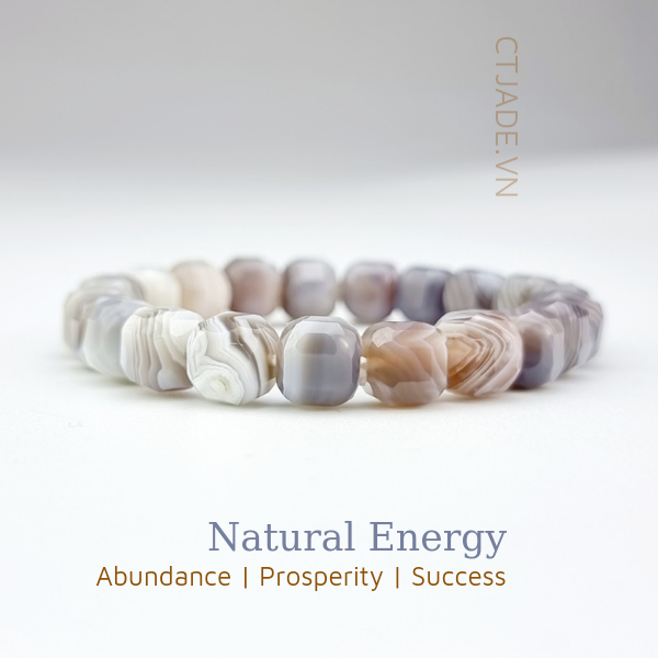 Mã não Botswana là một viên đá tuyệt vời có thể cân bằng năng lượng thể chất, cảm xúc và trí tuệ của chúng ta. Khi kết hợp với Pha lê tím, chúng cũng có thể điều hòa âm dương của chúng ta. Chúng sẽ mang lại cho ta sự ổn định bên trong, đặc biệt là khi chúng ta cảm thấy như mọi thứ xung quanh mình sắp sụp đổ.