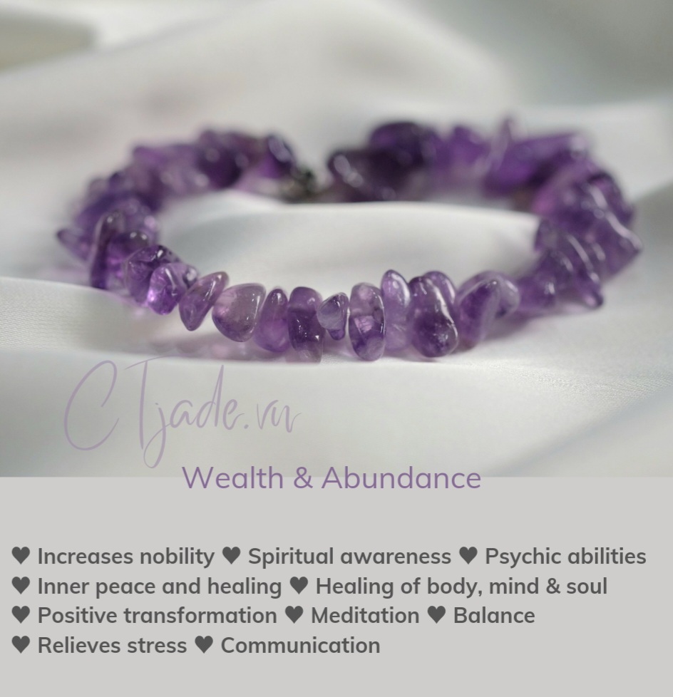 Amethyst khuyến khích sự tỉnh táo tinh thần liên tục, một cảm giác tâm linh và cái nhìn sâu sắc vào hiện thực của tinh thần. Nó truyền cảm giác công bằng và khả năng phán xét và kích thích tính trung thực và chính trực. Nhắc nhở bản thân có lập trường chánh kiến không bị người khác làm mê muội, dụ dỗ hay phụ thuộc, cuốn theo u mê. Như một viên đá thiền, chúng giúp ta dễ rơi vào trạng thái tĩnh lặng tâm trí và là một sự trợ giúp để tìm thấy bình an nội tâm sâu,khám phá sự khôn ngoan, thông tuệ, anh minh trong chúng ta...