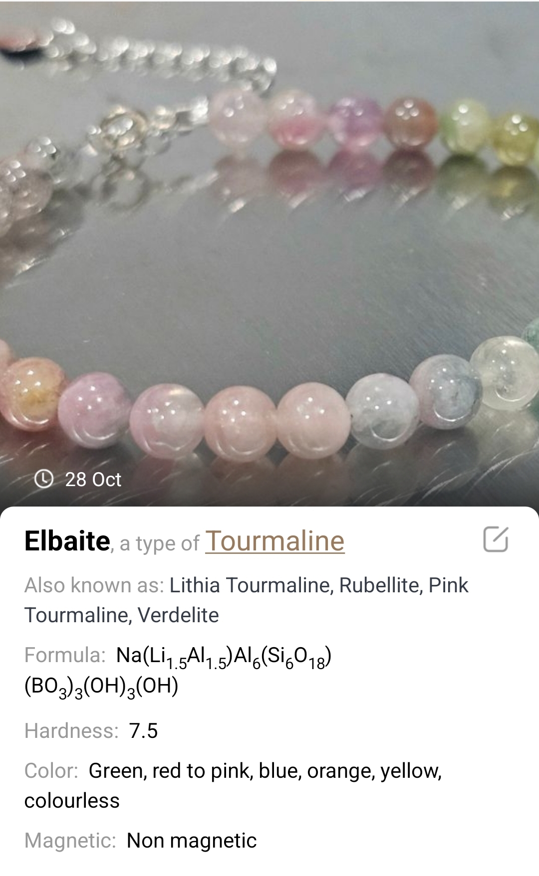 Vẻ đẹp hiếm hoi của elbaite làm cho nó trở thành một loại đá quý phổ biến và khoáng sản sưu tầm. Tất cả các màu sắc (không màu, xanh dương, xanh lá cây và hồng) của elbaite được sử dụng trong đồ trang sức và được cắt theo mọi hình thức và kiểu dáng. Là một khoáng sản sưu tầm, nó là một trong những khoáng sản quý giá nhất trên thế giới.