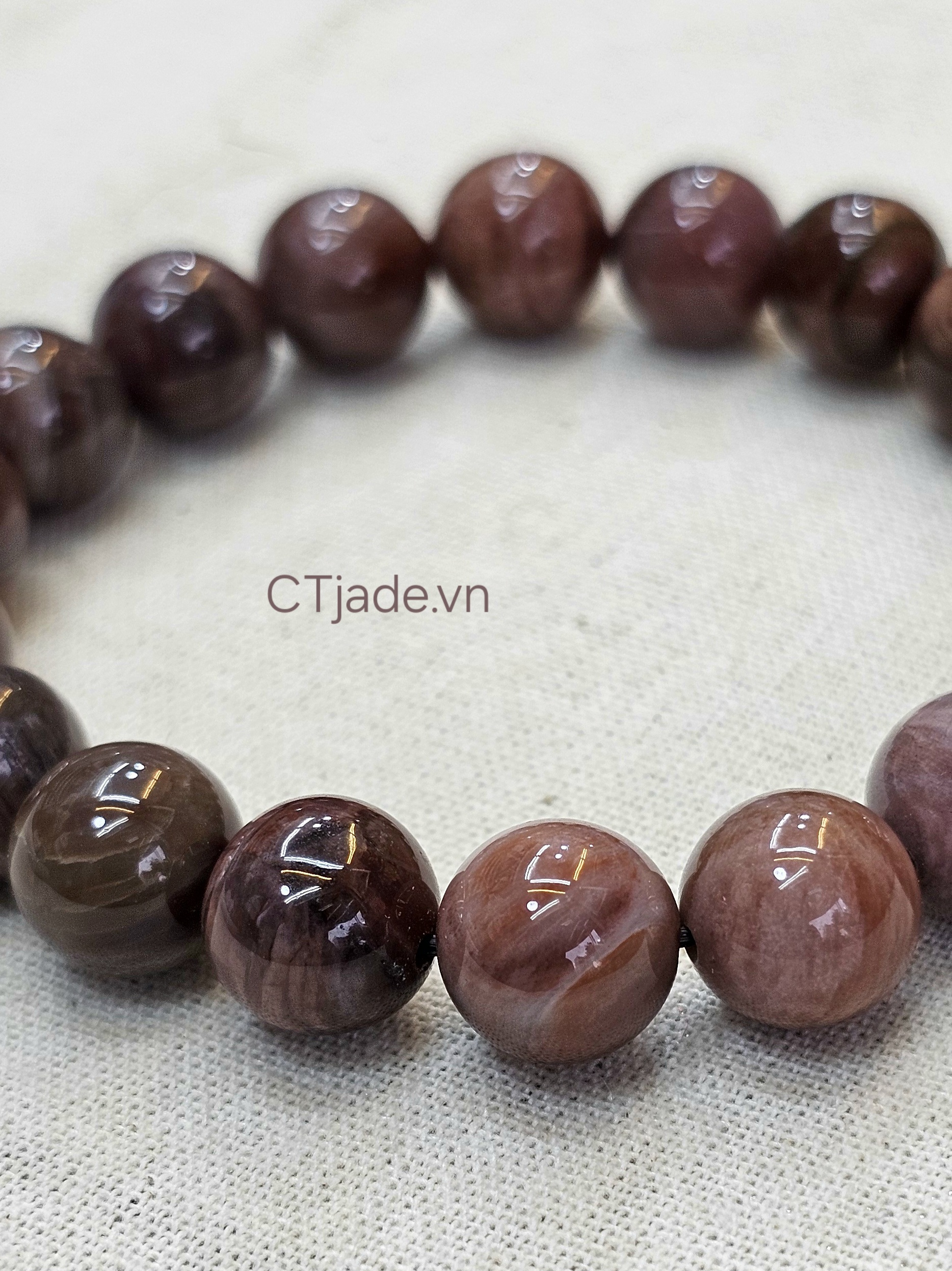 Mẫu 220607 Vòng tay hộ mệnh đá Gỗ hóa thạch thiên nhiên CTjade