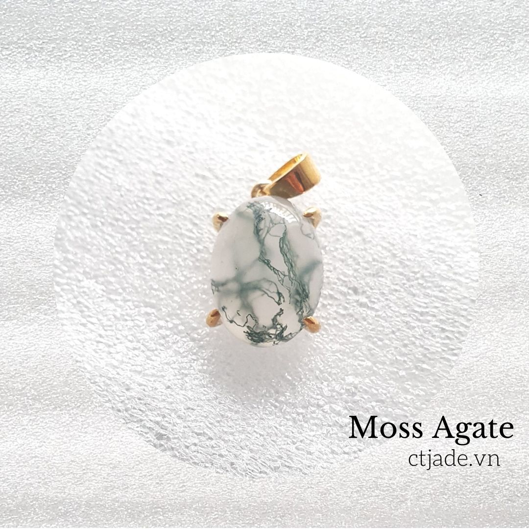 Vì vậy Moss Agate mang yếu tố Mộc, Kim (kim loại trong chúng), Thủy (nước nuôi cây), và bản chất đá là Thổ. Cộng thêm yếu tố hình thành từ đá lửa nữa nên cũng có liên quan đến Hỏa khí! Thật tuyệt khi chúng mang trên mình vẻ đẹp trù phú thịnh vượng của thiên nhiên hội đủ 5 yếu tố Kim, Mộc, Thủy, Hỏa, Thổ. Là viên đá hợp với mọi người như kiểu sự sống tự nhiên chẳng khắc ai chỉ nuôi dưỡng không tổn hại chi!