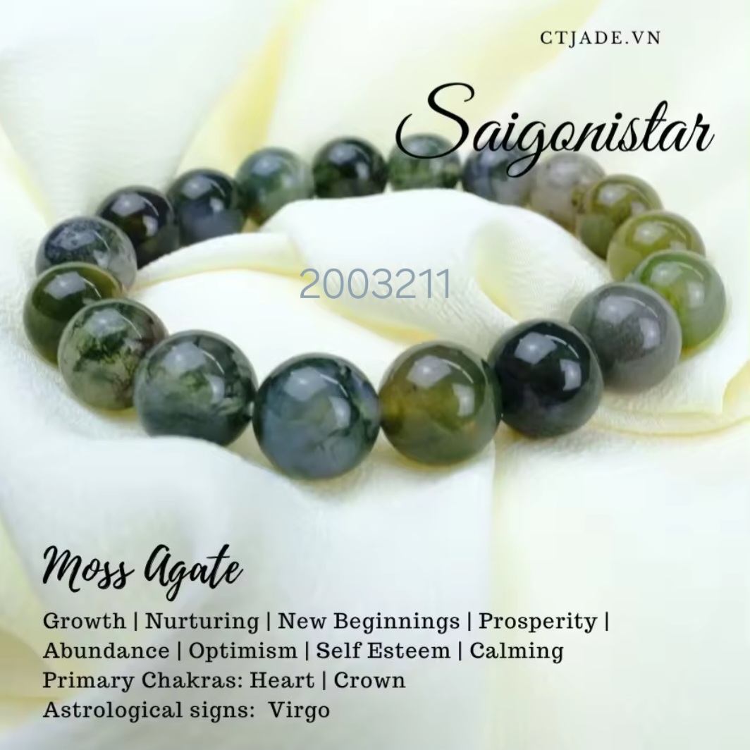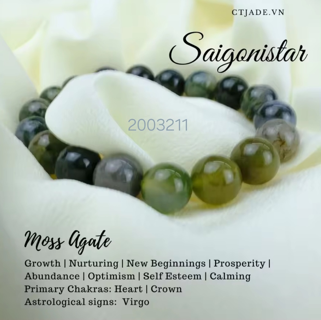 - 100% Đá Băng ngọc thủy tảo thiên nhiên (Moss Agate), đá A, không qua bất kỳ xử lý nào, không nhiệt, không hóa chất. Đá bóng đẹp theo thời gian, càng dùng càng đẹp.