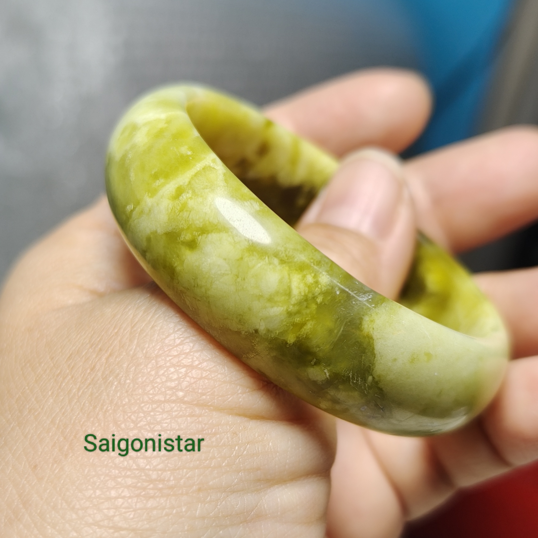 Vòng đá Tây Bắc, đá Serpentine thiên nhiên không qua bất kỳ xử lý nào, màu sắc sống động rất tươi sáng. Vân đá độc đáo.