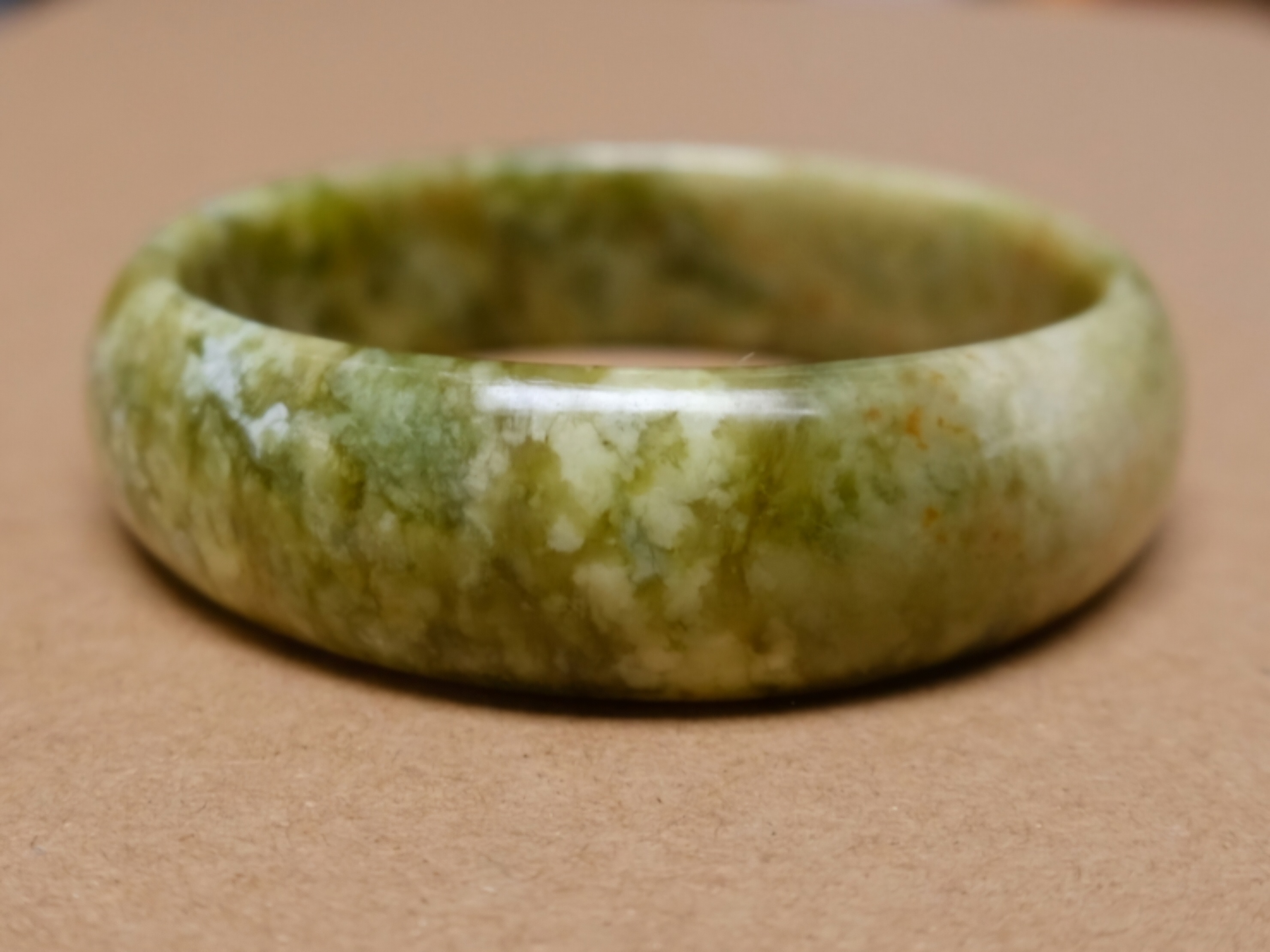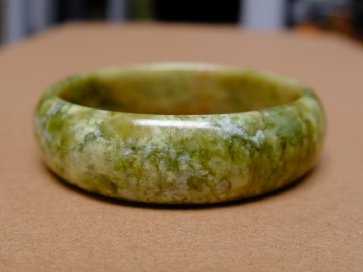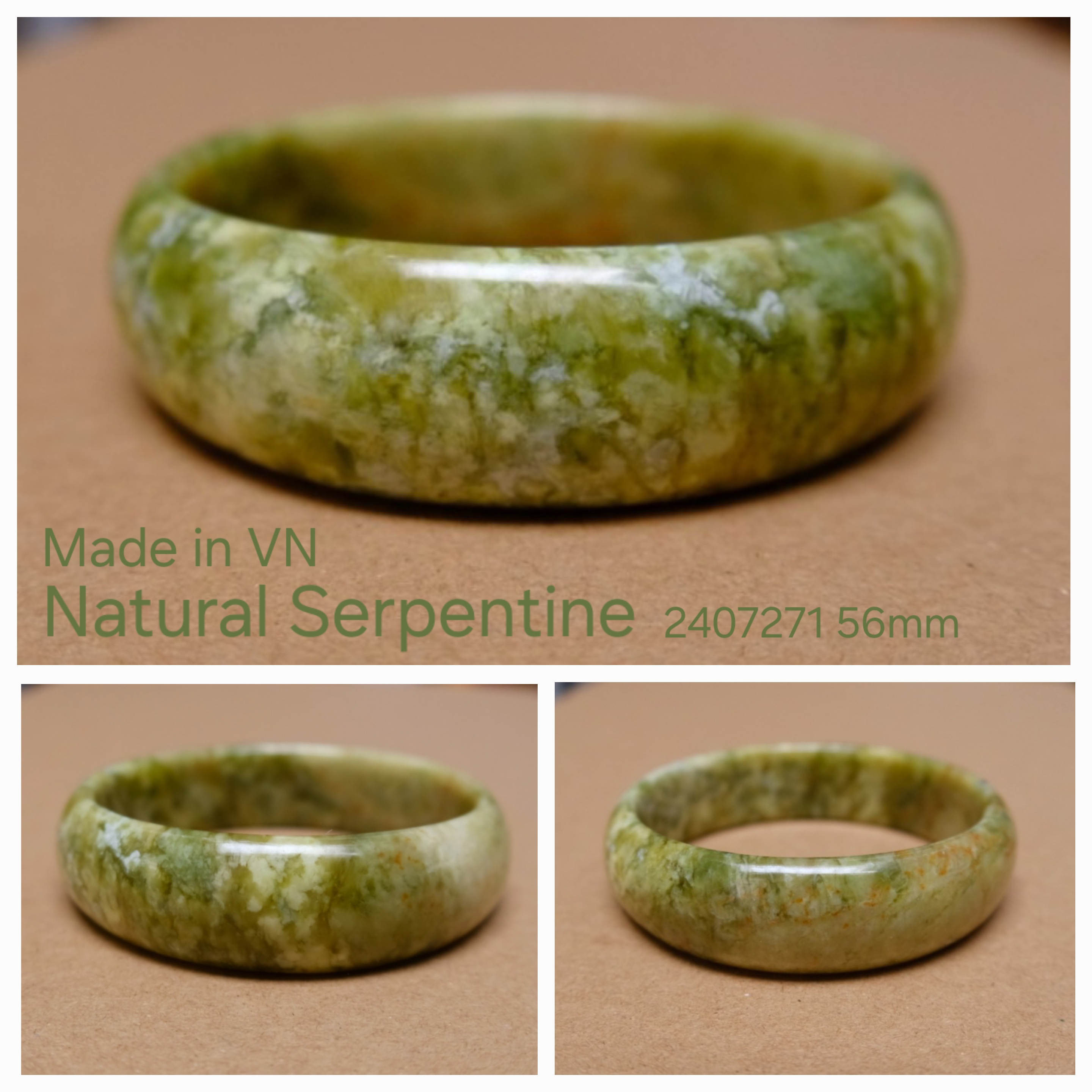 Vòng tay đá Serpentine thiên nhiên 100%, - Viên đá chế tác thủ công 100% bởi thế không bóng đẹp bằng các quy trình đánh bóng bằng máy móc. Thế nhưng mình muốn ủng hộ người thợ đá cần mẫn VN, họ không thể cạnh tranh với chất lượng đầu ra như máy móc làm, phải lâu hơn và cực công hơn rất nhiều, cố duy trì để kiếm sống bằng lao động thủ công. Tuy nhiên chất đá tuyệt đẹp này sẽ lên nước, bóng đẹp khá nhanh khi thường xuyên đeo