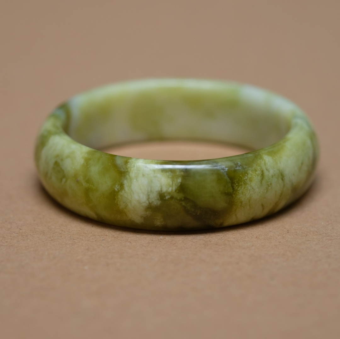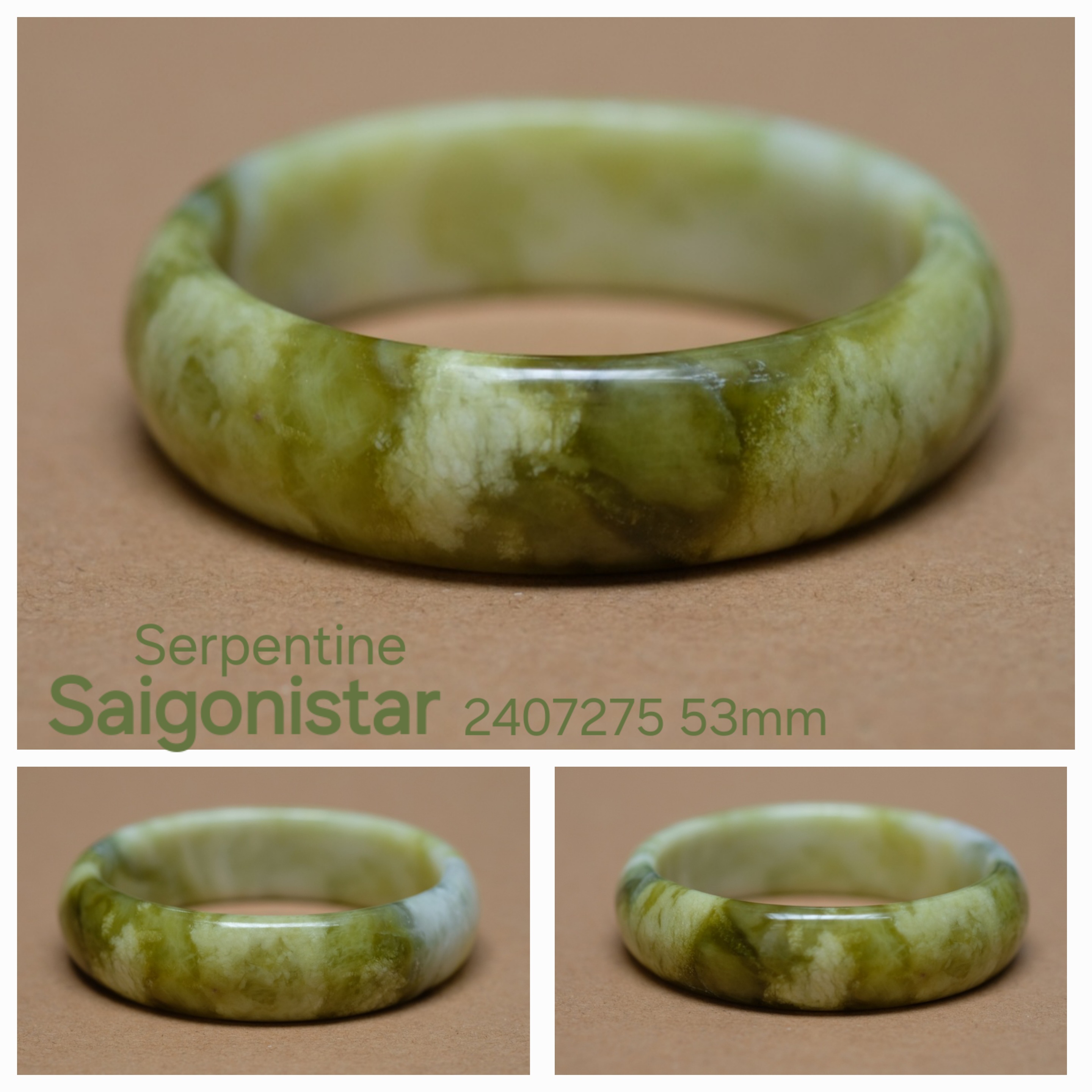 Vòng tay đá Serpentine thiên nhiên 100%, - Viên đá chế tác thủ công 100% bởi thế không bóng đẹp bằng các quy trình đánh bóng bằng máy móc. Thế nhưng mình muốn ủng hộ người thợ đá cần mẫn VN, họ không thể cạnh tranh với chất lượng đầu ra như máy móc làm, phải lâu hơn và cực công hơn rất nhiều, cố duy trì để kiếm sống bằng lao động thủ công. Tuy nhiên chất đá tuyệt đẹp này sẽ lên nước, bóng đẹp khá nhanh khi thường xuyên đeo