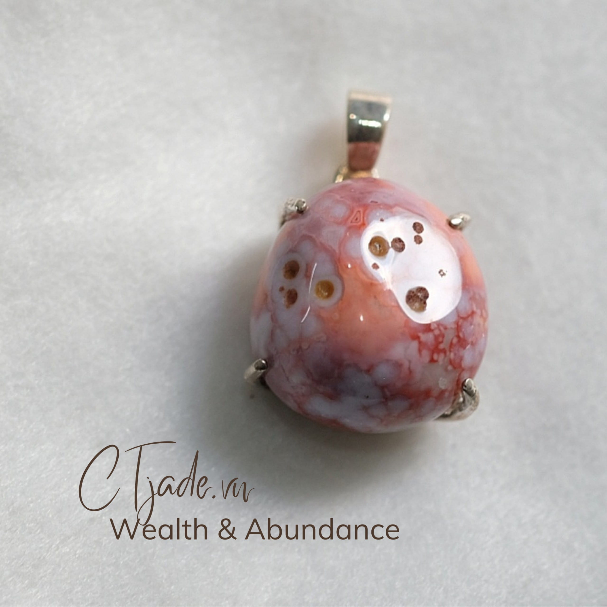 Dây chuyền mặt đá phong thủy hộ mệnh đá thiên nhiên CTjade, mỗi loại đá phong thủy đều có tác động riêng biệt, nhưng phong thủy tốt lành đầu tiên là chúng cần đẹp, trông chúng đẹp là điều tốt lành cần thiết đầu tiên phải có khi ta nhìn thấy chúng. Năng lượng khổi động từ cái nhàn là đẹp, cảm xúc tự dưng cũng cảm tình, mến yêu, và cả thích thú muốn có được. Màu sắc, hoa văn của chùng mà làm ta yêu thich thì cũng là dấu hiệu hữu duyên, hòa hợp.