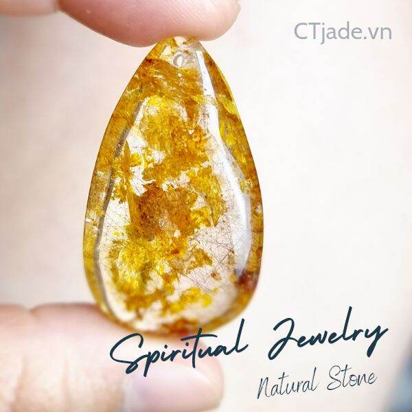 Trang sức đá phong thủy hộ mệnh CTjade | Mặt thạch anh tóc vàng 41mm, 13gam