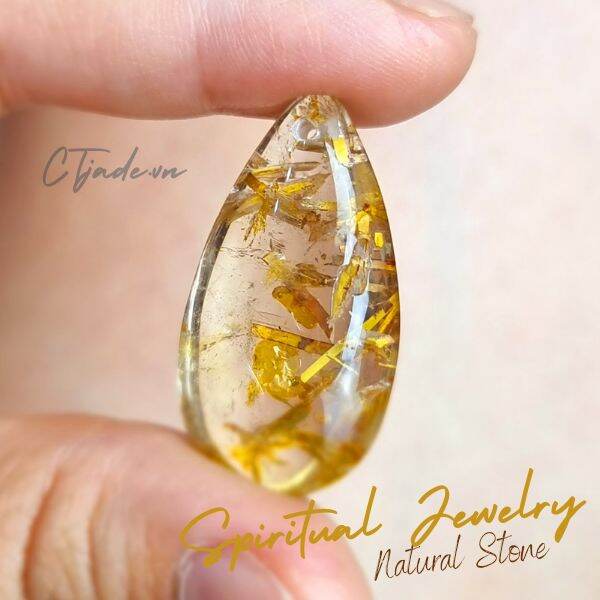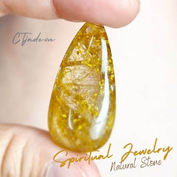 Trang sức đá phong thủy hộ mệnh CTjade | Mặt thạch anh tóc vàng 36mm, 9.2gam