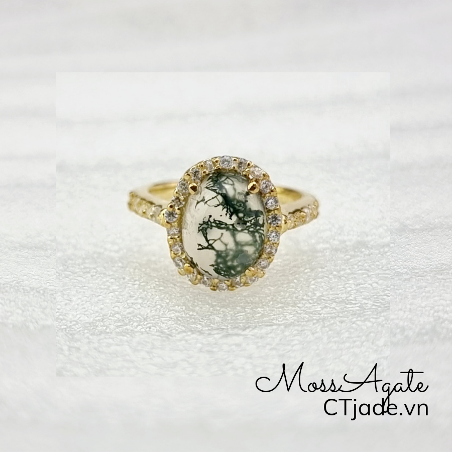 Nhẫn đá Moss Agate - Băng Ngọc Thủy Tảo thiên nhiên  | Trang sức cao cấp đá thiên nhiên CTjade