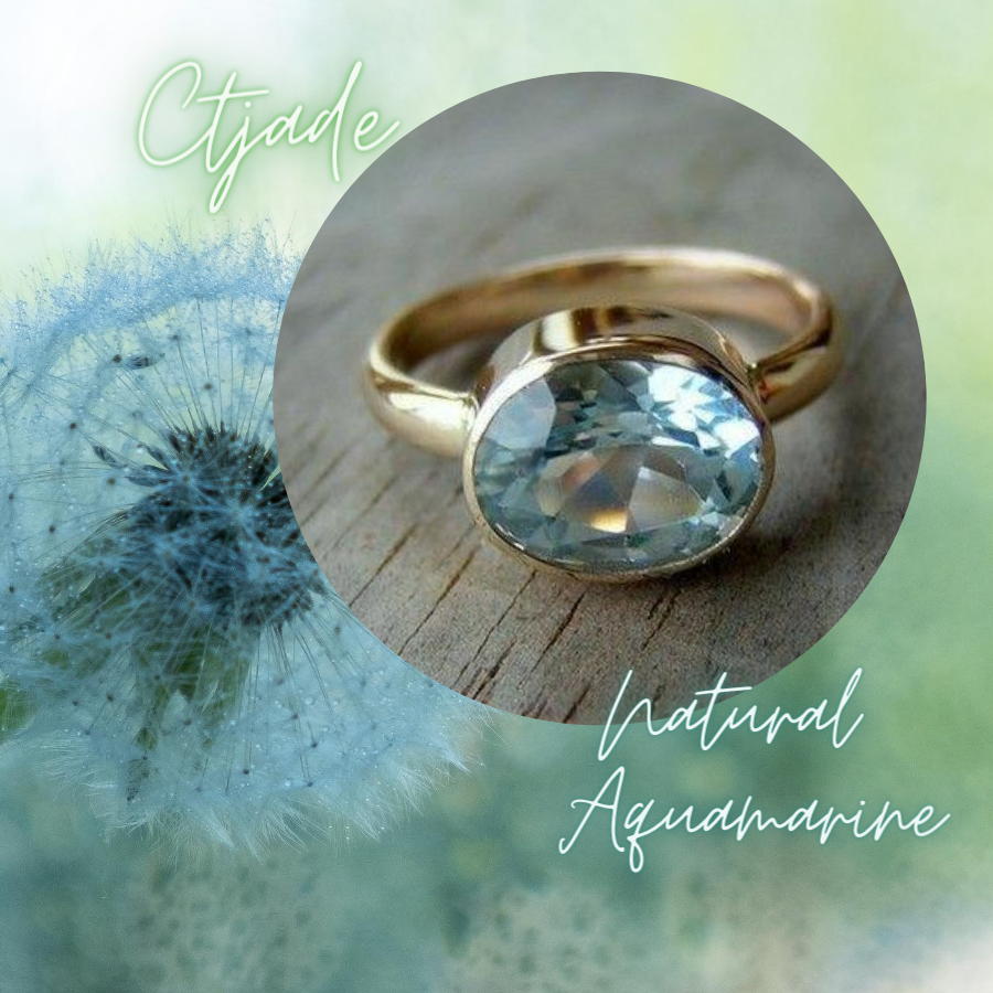 - Mặt nhẫn đá Aquamarine 100% thiên nhiên