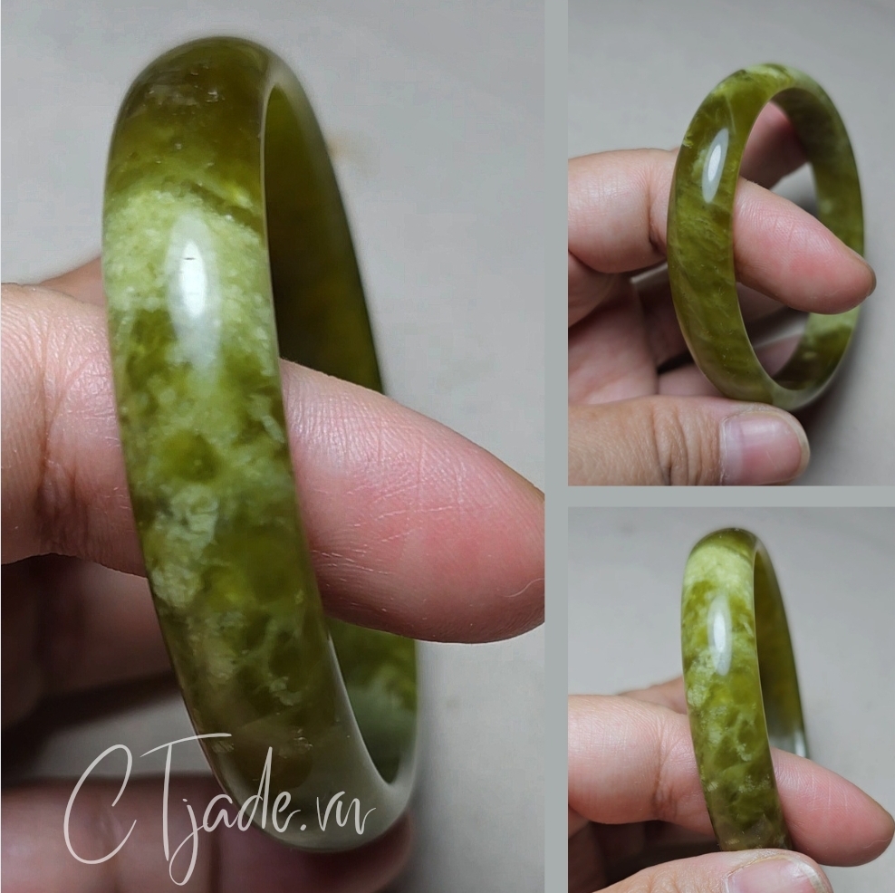 Vòng bản chế tác từ đá nguyên khối, ngọc Serpentine thấu quang, năng lượng đẹp.