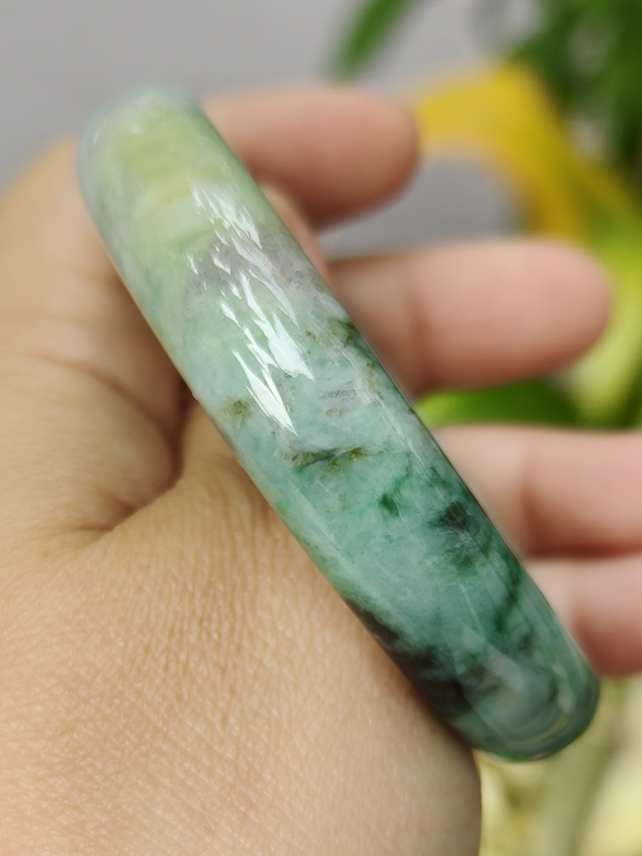 Chiếc vòng cẩm thạch thiên nhiên xanh phỉ thủy pha sương khói – biểu tượng của bình an, may mắn và sự thăng hoa nội tâm. Màu xanh chuyển tầng nhẹ nhàng như làn mây thoảng qua ngọc, mang lại cảm giác mát lành và cân bằng năng lượng cho người đeo. Tuyển chọn độc bản tại CTjade.vn – nơi gìn giữ vẻ đẹp thật của cẩm thạch tự nhiên.
