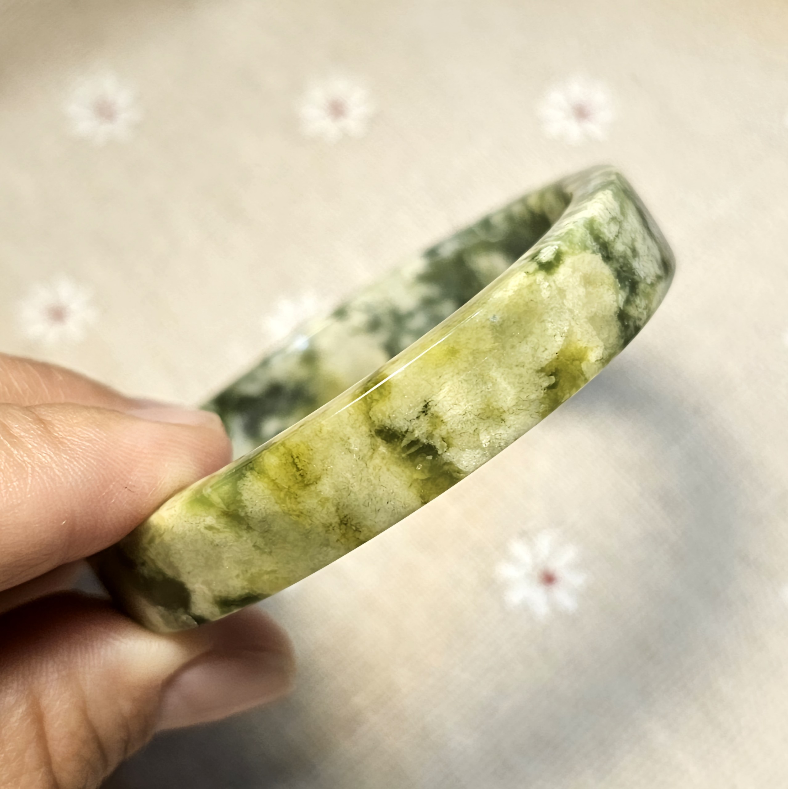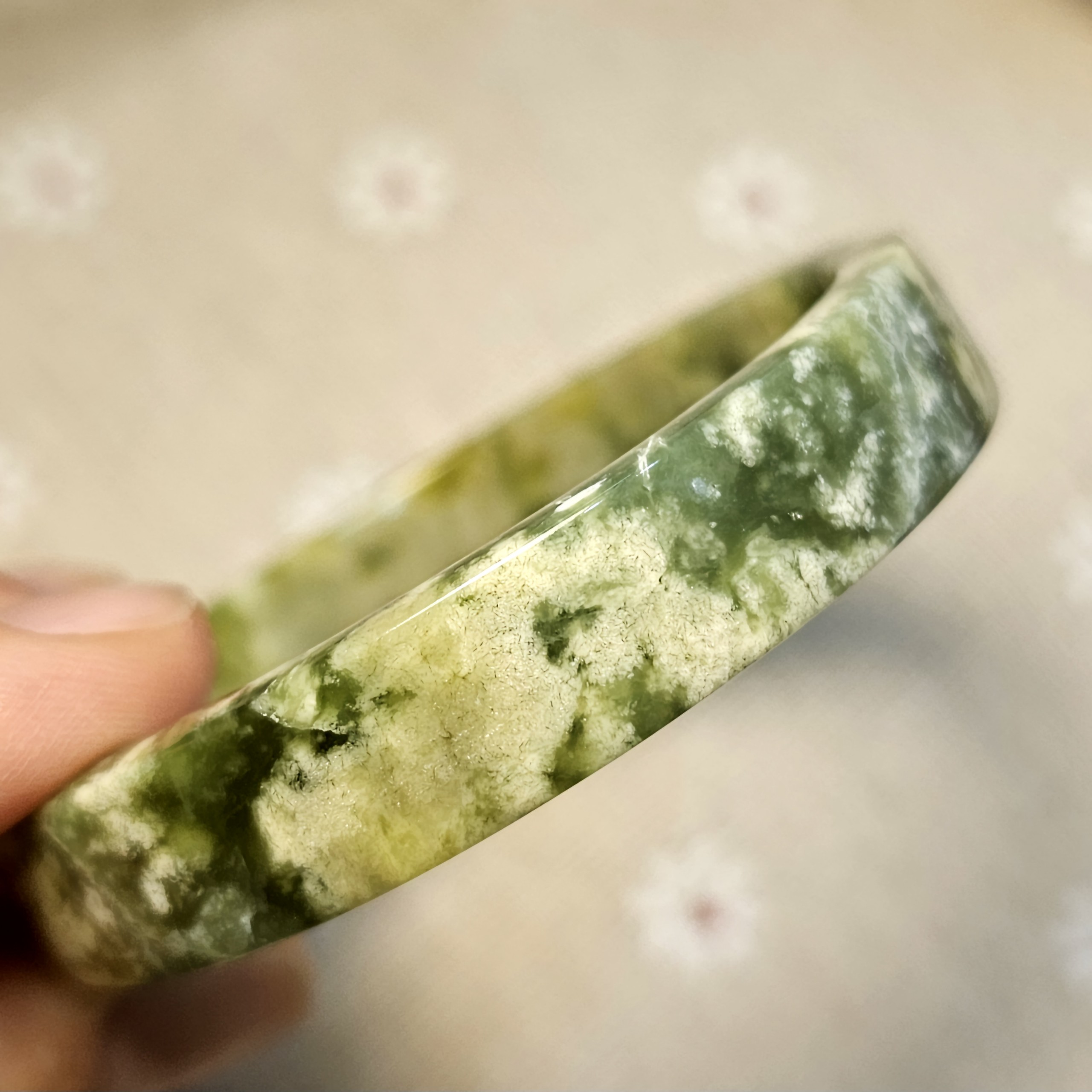 Vòng tay đá Serpentine thiên nhiên 100%, - Viên đá chế tác thủ công 100% bởi thế không bóng đẹp bằng các quy trình đánh bóng bằng máy móc. Thế nhưng mình muốn ủng hộ người thợ đá cần mẫn VN, họ không thể cạnh tranh với chất lượng đầu ra như máy móc làm, phải lâu hơn và cực công hơn rất nhiều, cố duy trì để kiếm sống bằng lao động thủ công.