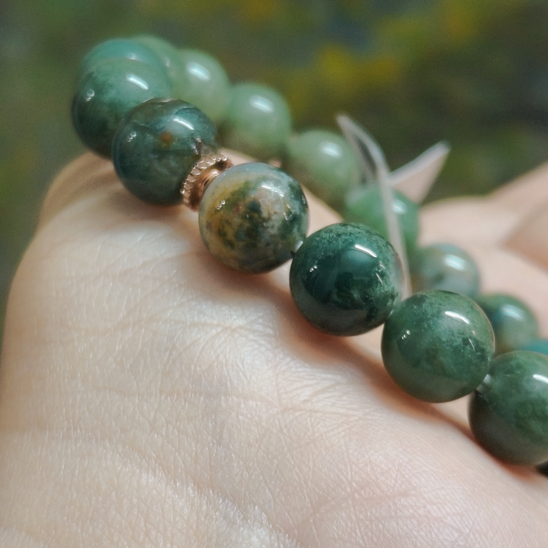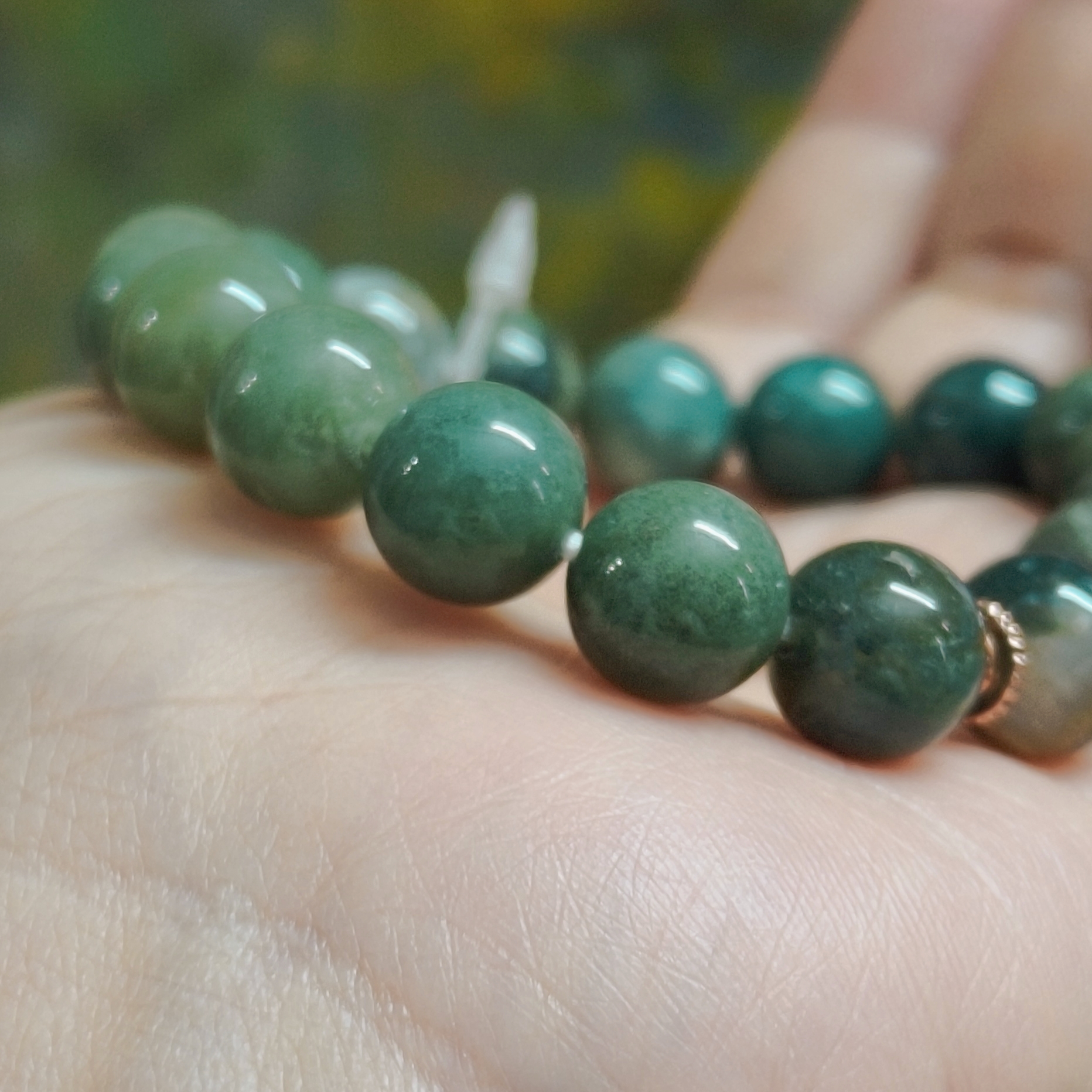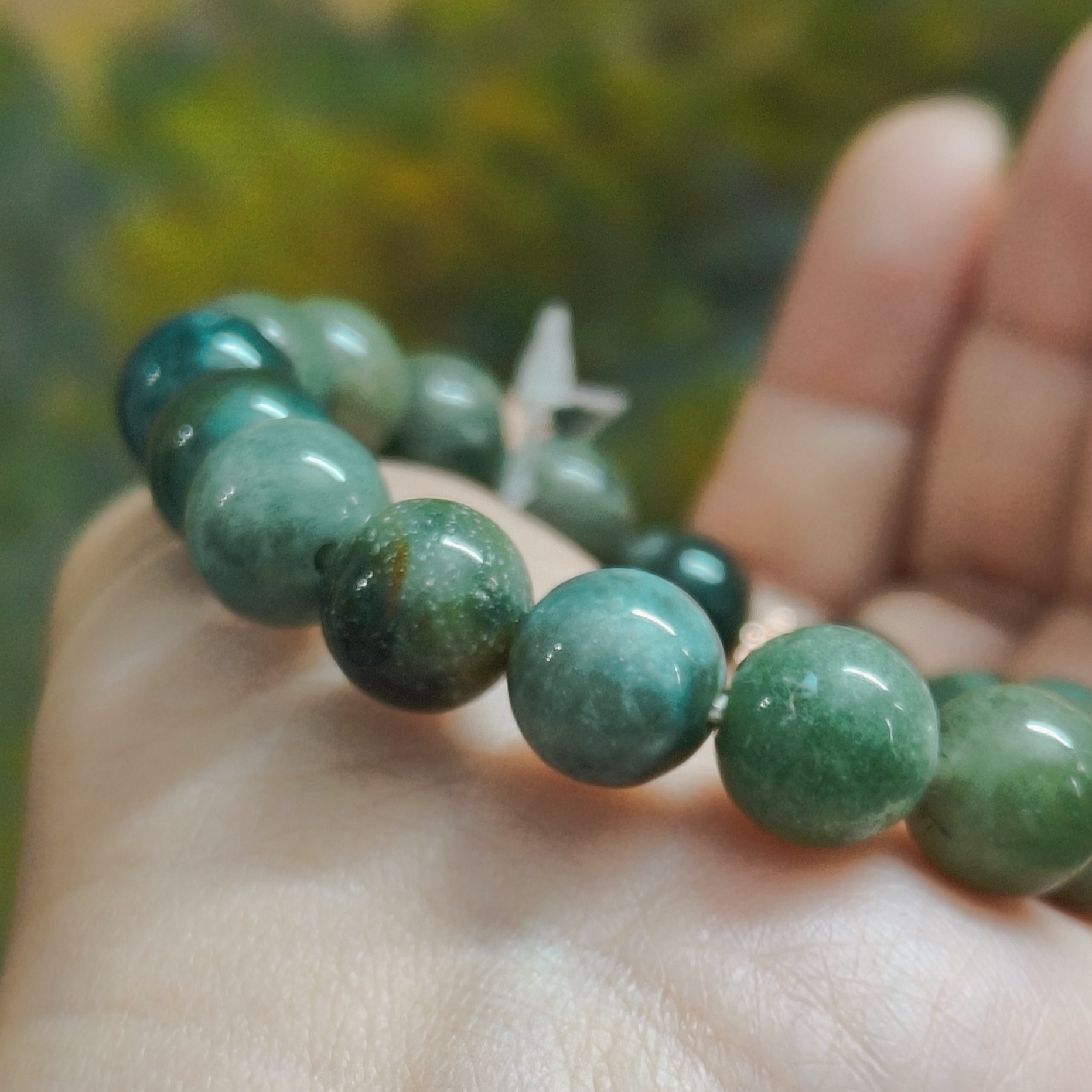 Viên đá Green Jasper tỏa sáng với một vẻ đẹp tự nhiên và mạnh mẽ. Màu xanh của nó mang đến cảm giác tươi mát và thanh thản, như là một dòng suối trong veo chảy qua các lớp đá. Với sự kết hợp của các sắc thái xanh khác nhau, từ xanh lá cây tươi sáng đến xanh biển sâu, viên đá Green Jasper tạo nên một hiệu ứng hài hòa và thu hút.