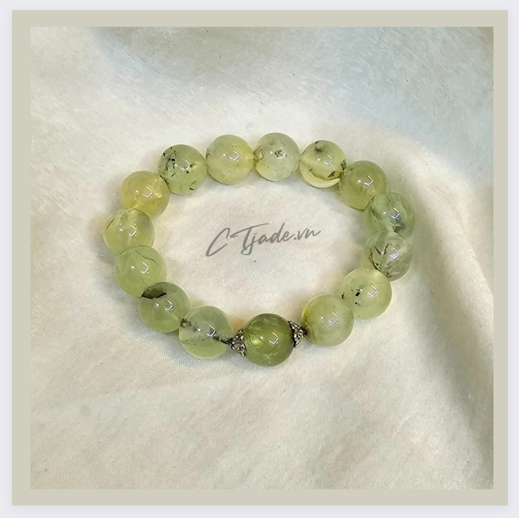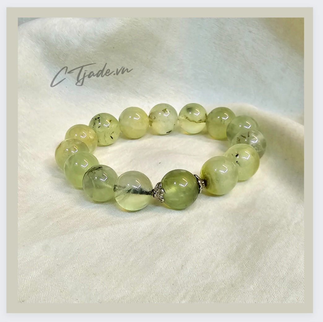 - Vòng tay đá thiên nhiên, trang sức phong thủy hộ mệnh đá Prehnite thiên nhiên