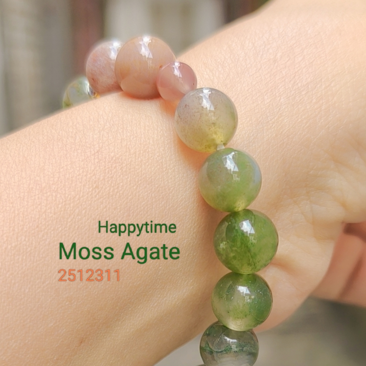 Bản phối này sử dụng đá mã não Rêu Moss Agate, Chalcedony, Jasper và hóa thạch San Hô tùy mỗi bản phối.