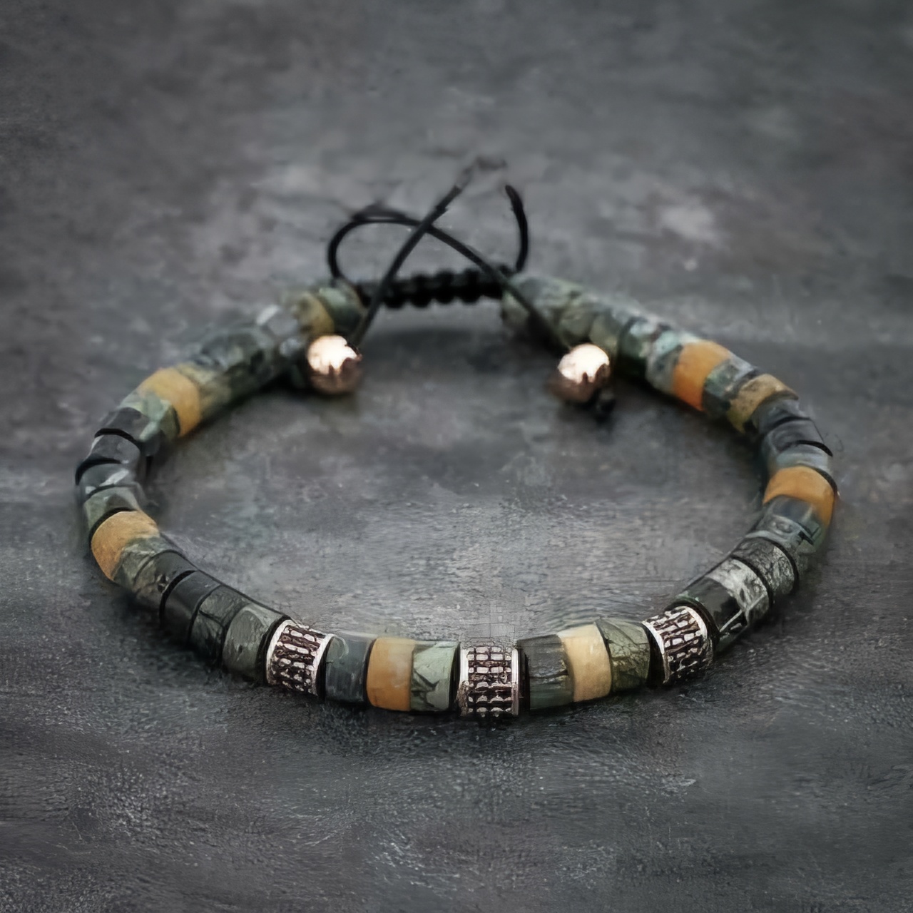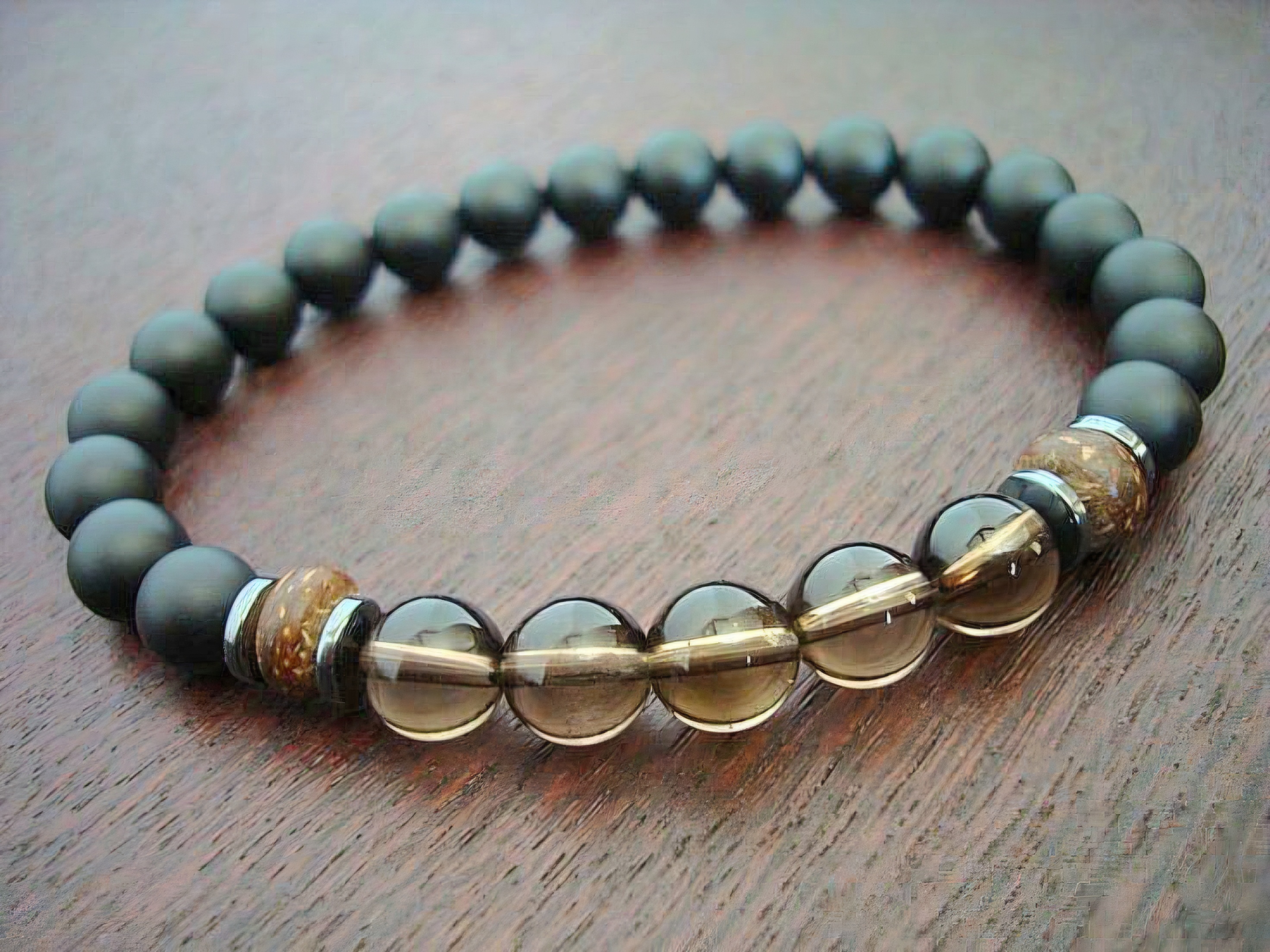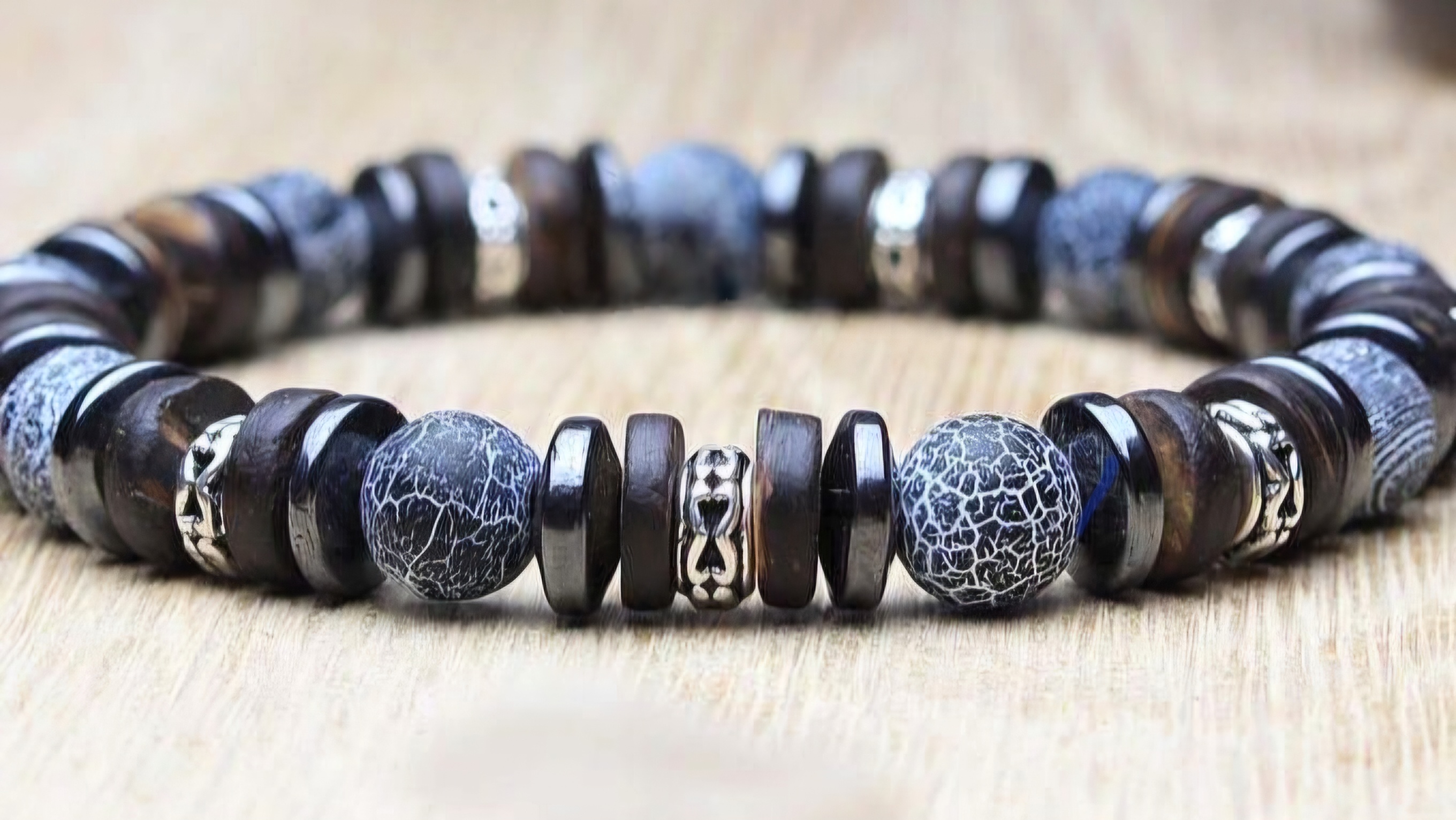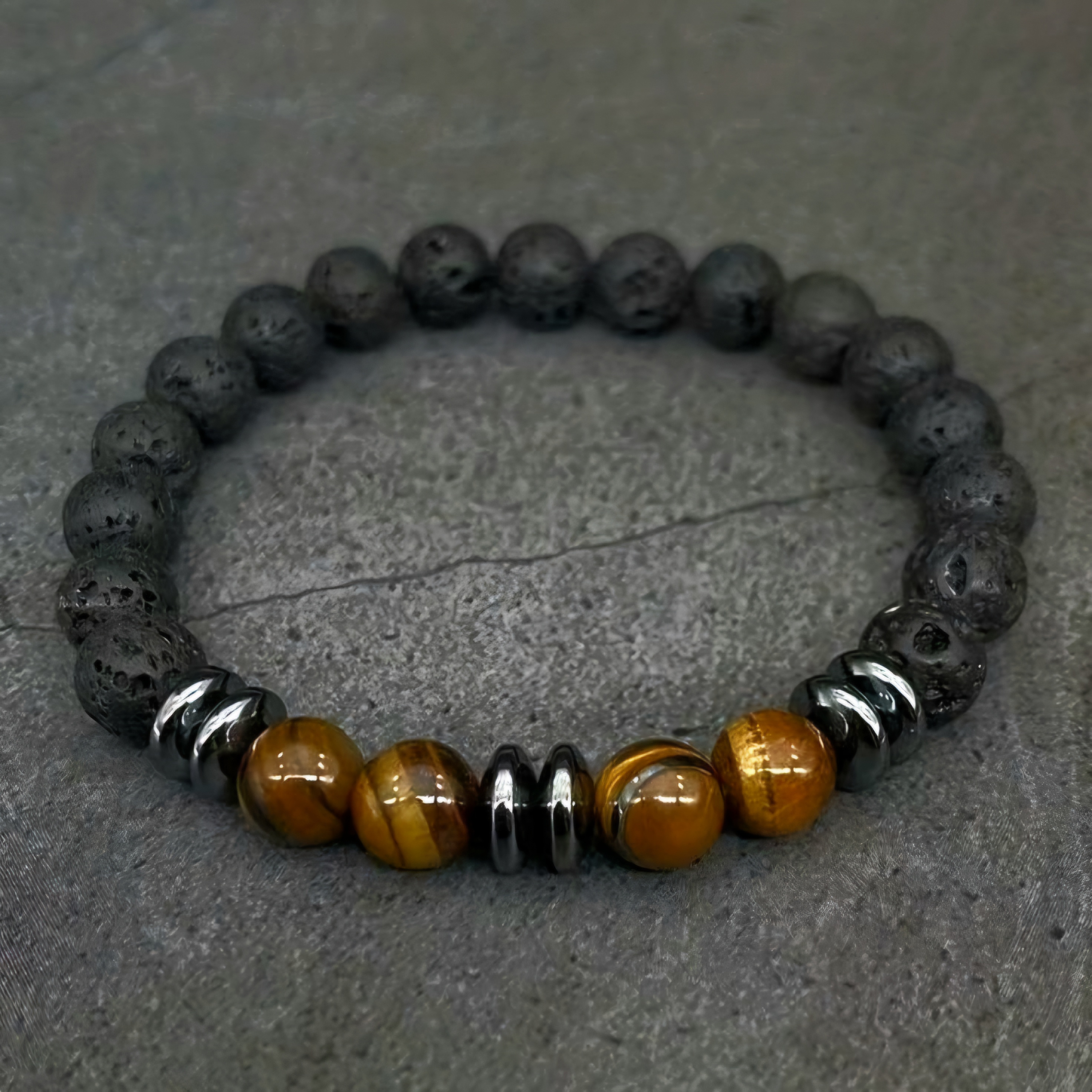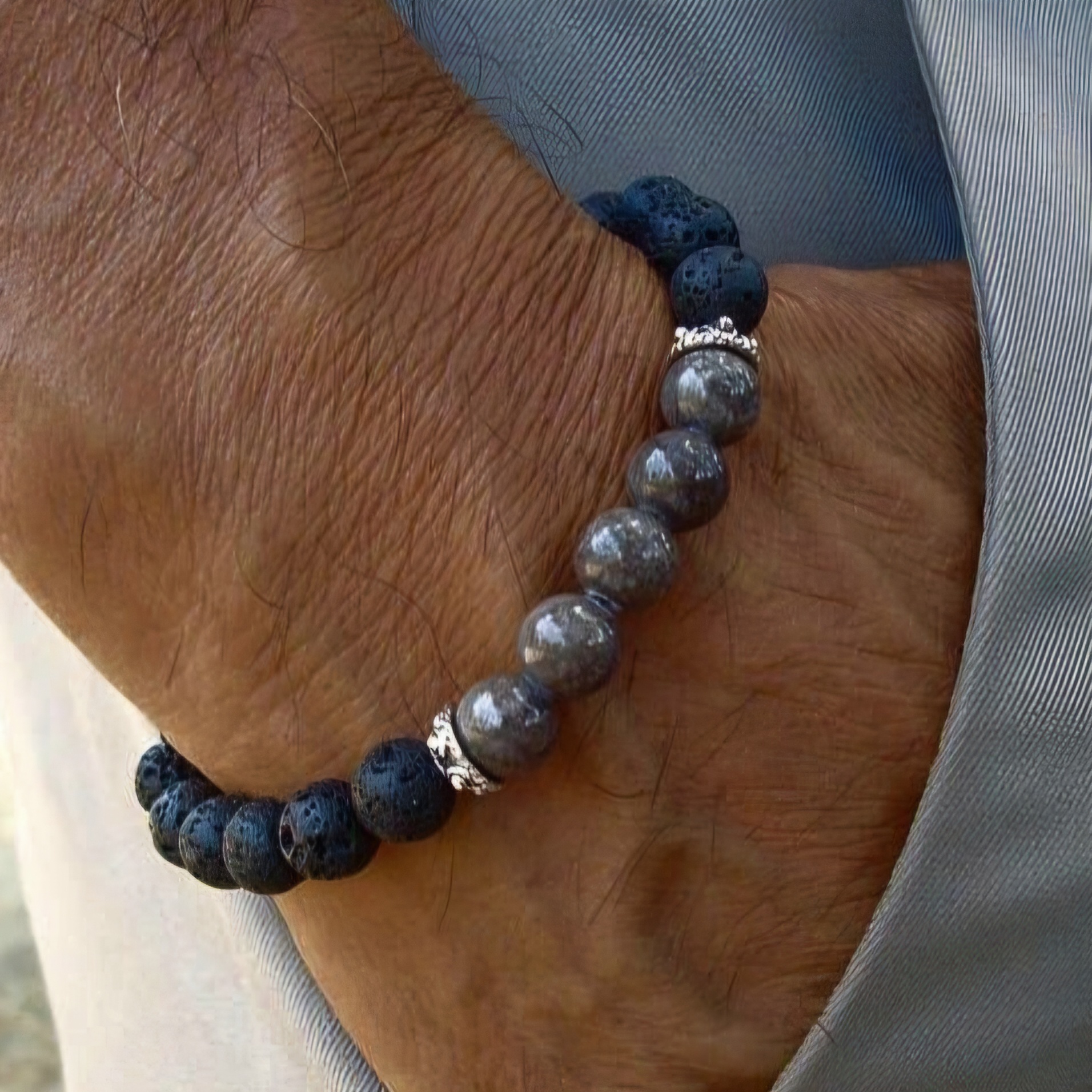 Chất đá Hematite luôn được chọn làm tăng vẻ đẹp và năng lượng cho chiếc vòng nam.