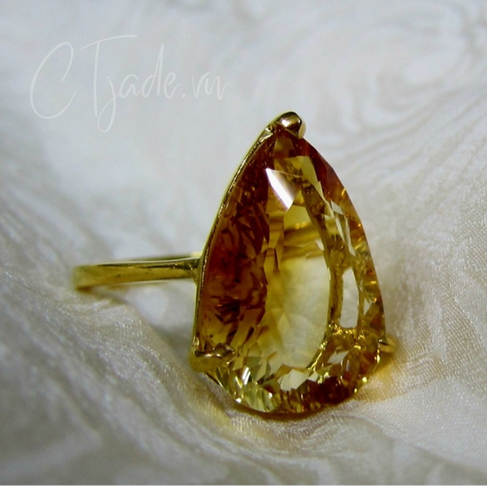 Trang sức đá phong thủy thịnh vượng may mắn - nhẫn đá Citrine thiên nhiê tại CTjade