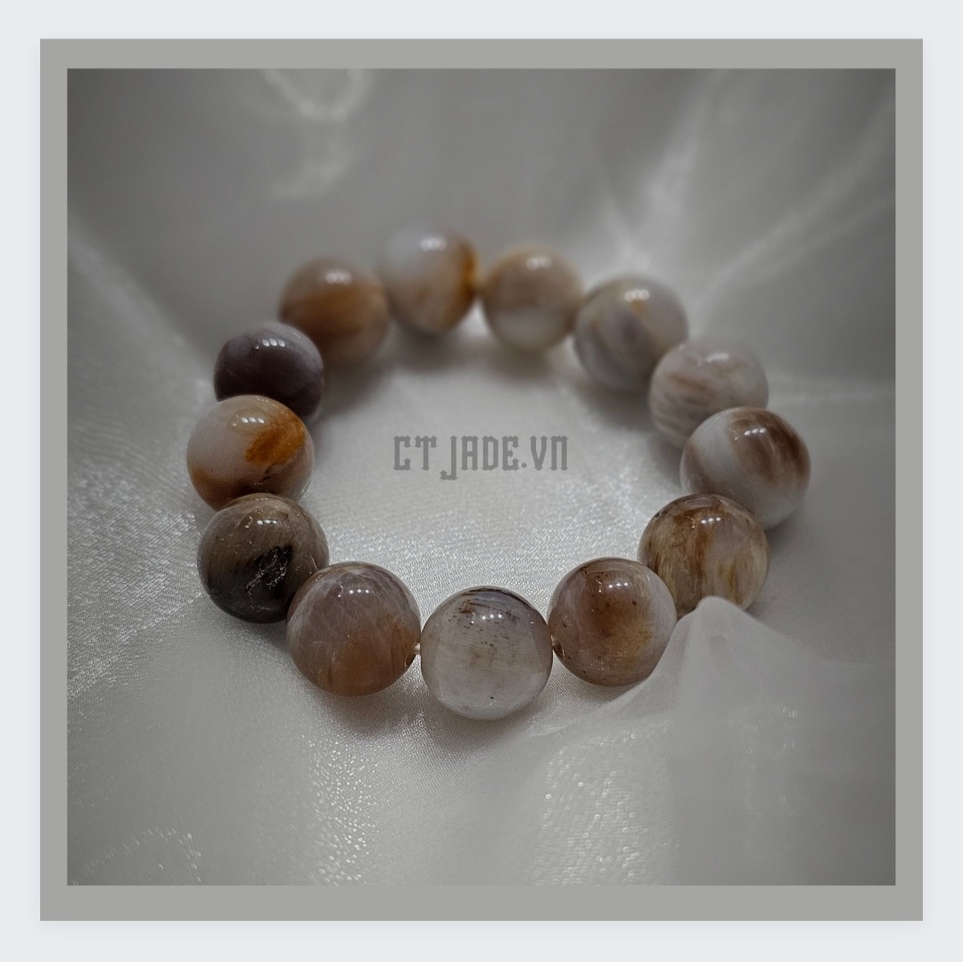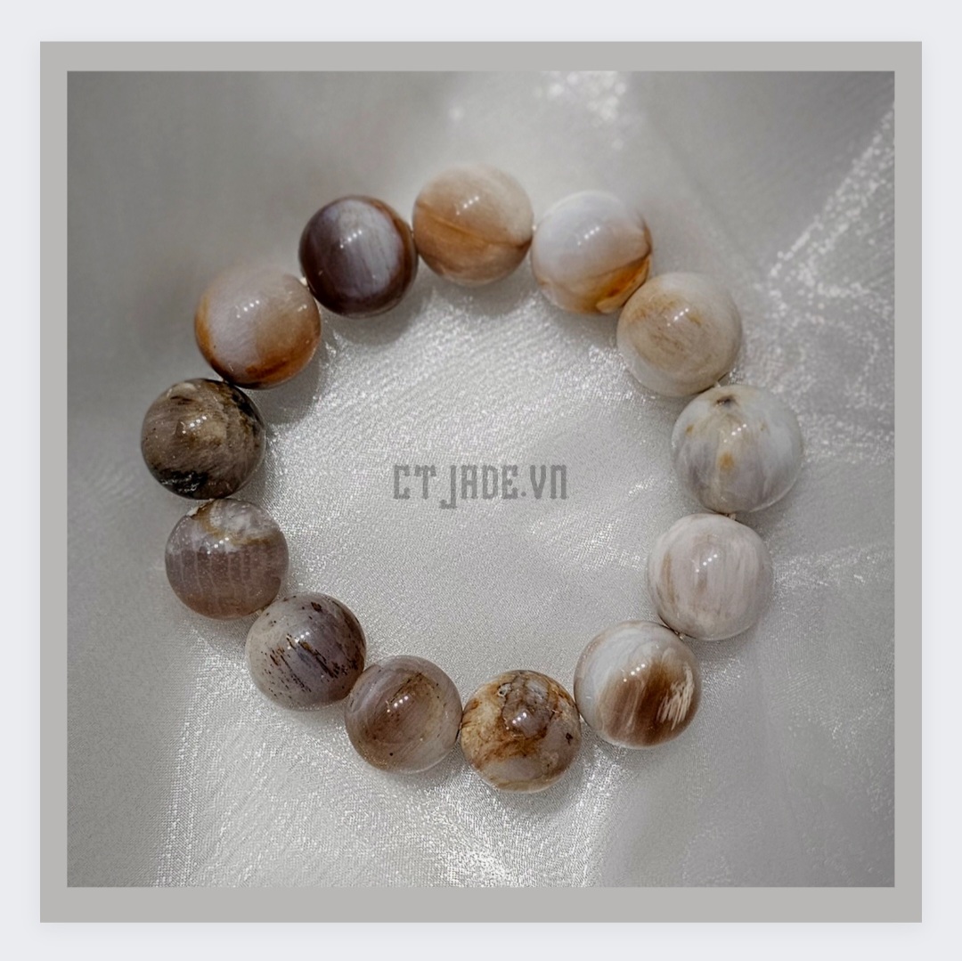 Vòng gỗ hóa thạch CTjad mã số 2306183 viên đá 16-18ly