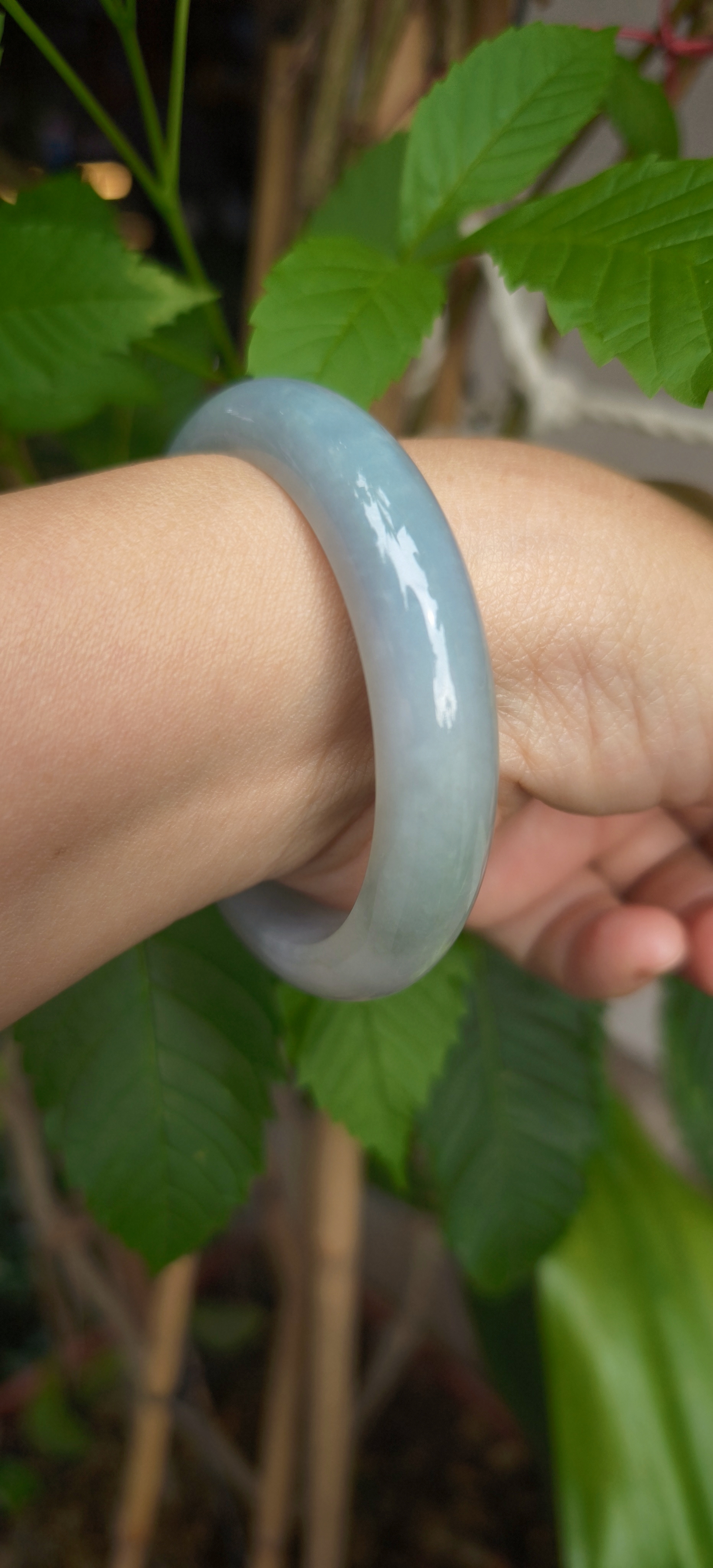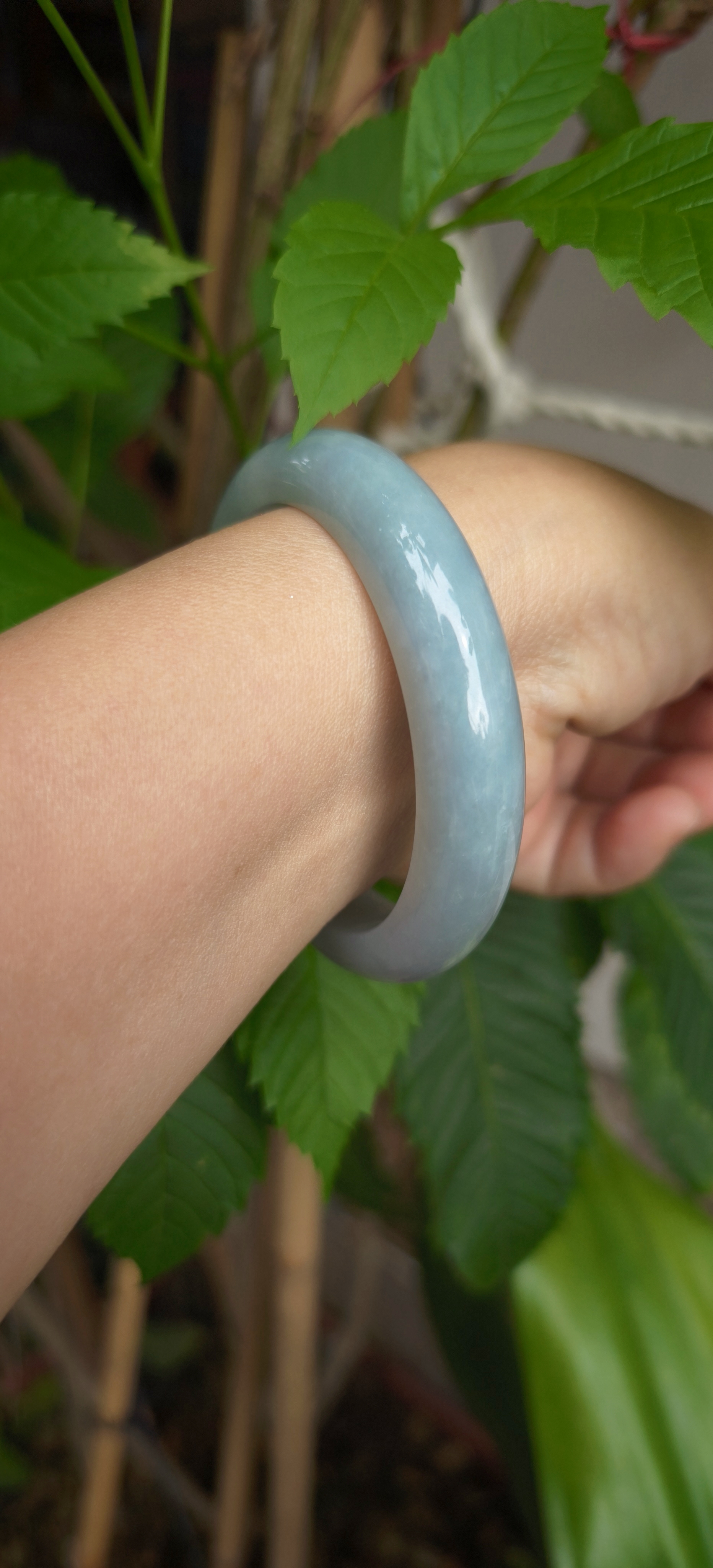 Một sắc độ hiếm thấy trong thế giới ngọc, hòa quyện giữa ánh xanh lam và hơi sương ngọc phai, tạo cảm giác vừa hiện đại vừa cổ điển. Khi đeo lên tay, vòng tôn màu da tự nhiên, mang lại cảm giác nhẹ nhõm, yên bình — như thể người đeo đang mang cả khung trời tĩnh lặng trong lòng bàn tay.