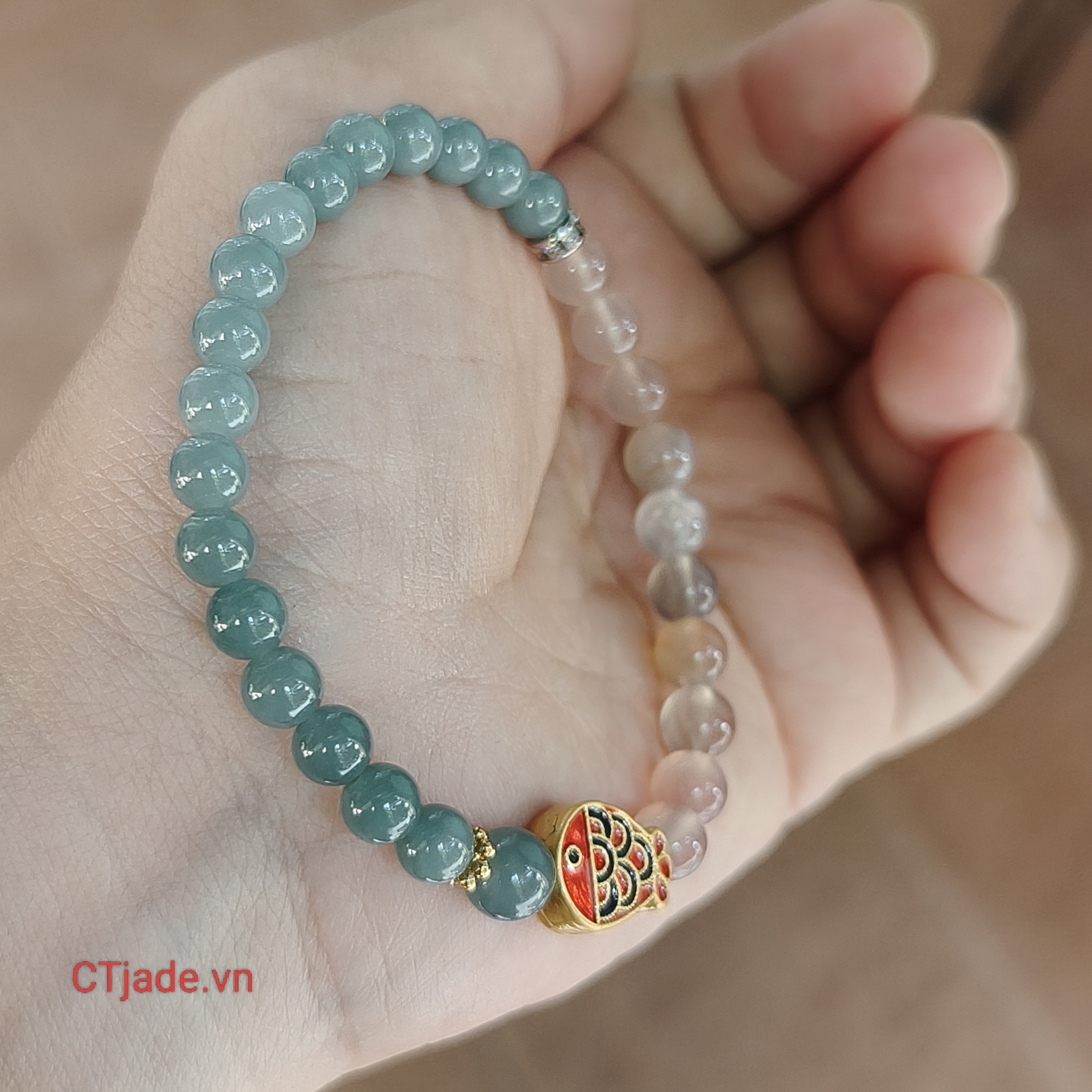 Đầu tiên tôi chọn đá, tôi chọn 18 viên lam ngọc tượng trưng cho Lục Căn, Lục Trần, Lục Thức, hướng tâm an lạc, buông bỏ Tham Sân Si, đem lại may mắn 🍀cho người chọn đeo.